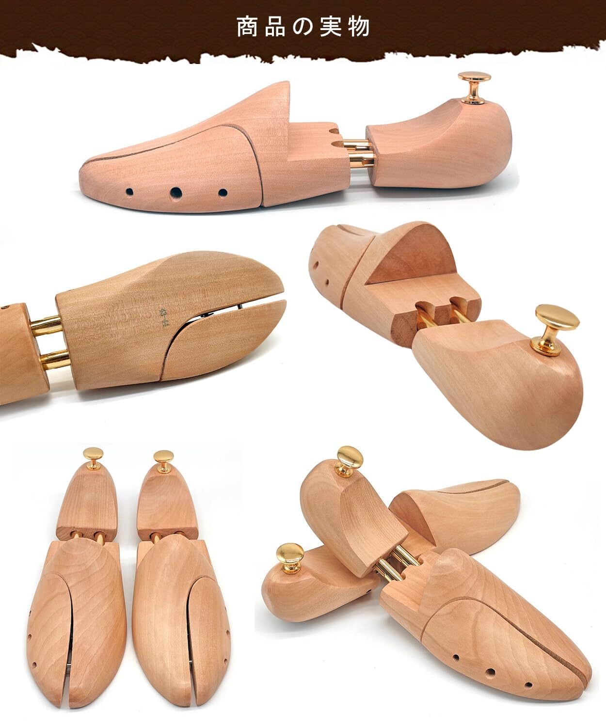 注:こちらのシューキーパーは天然木を使用して手作業で作成される部分もあるため、モノによって木目や色味が違っていたり天然木傷が見られる場合がございます、形にも多少個体差がございます。予めご了承くださいますようお願い致します。