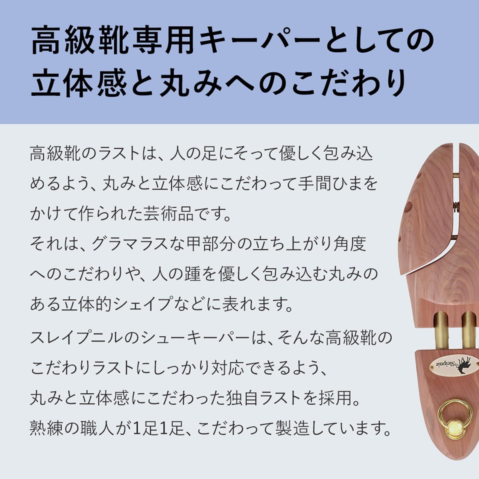 米国産アロマティックレッドシダーを使用した、高級靴向けのシューキーパーです。お気に入りの靴を長期間にわたり美しくキープし、寿命を延ばします。