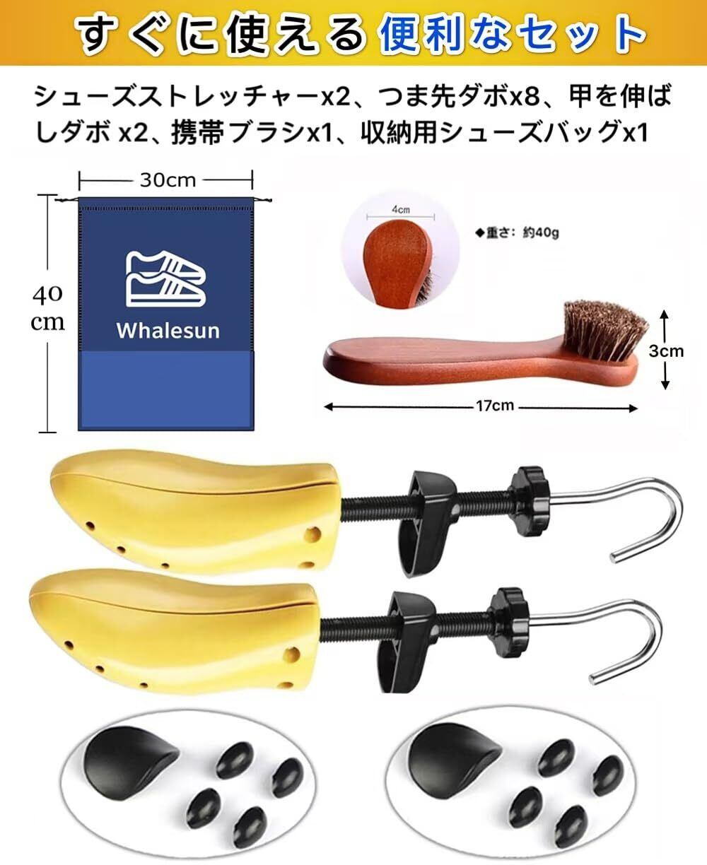 [Whalesun] シューズストレッチャー シューキーパー シューズフィッター 靴サイズ調整 靴伸ばし プラスチック シューズバッグ 携帯用靴ブラシ付 メンズ レディース 二個セット 左右兼用