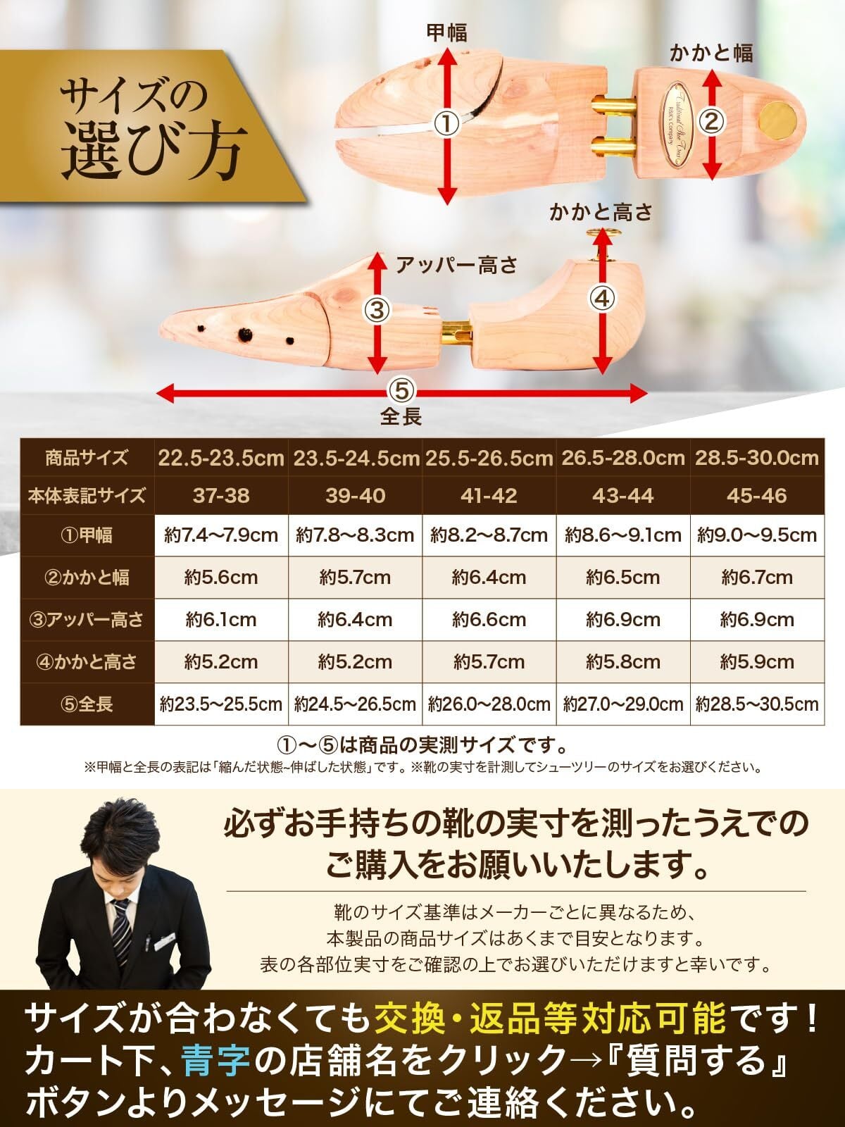 製品実寸の詳細は商品画像内のサイズ表をご覧下さい。※バネが関係する部位は伸縮の分、表の値に幅を持たせてあります。値は本製品の各サイズ(普段靴を選ぶ時のサイズに合わせた表記)の平均値を掲載しておりますが、商品は一つ一つハンドメイドで作られておりますため、数値より若干の誤差がある場合がございます。予めご了承くださいませ。