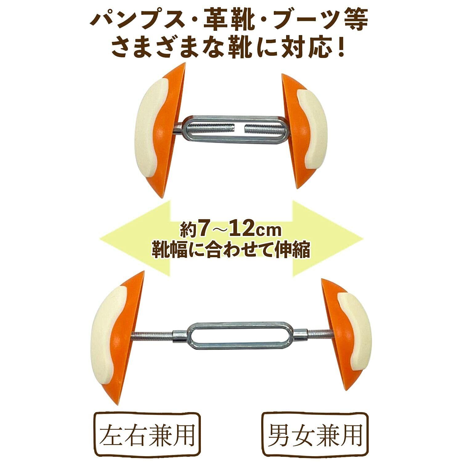 幅が約7~12cmに調節可能なので、パンプス・革靴・ブーツなど様々な靴に対応できるので、男女問わずお使いいただけます