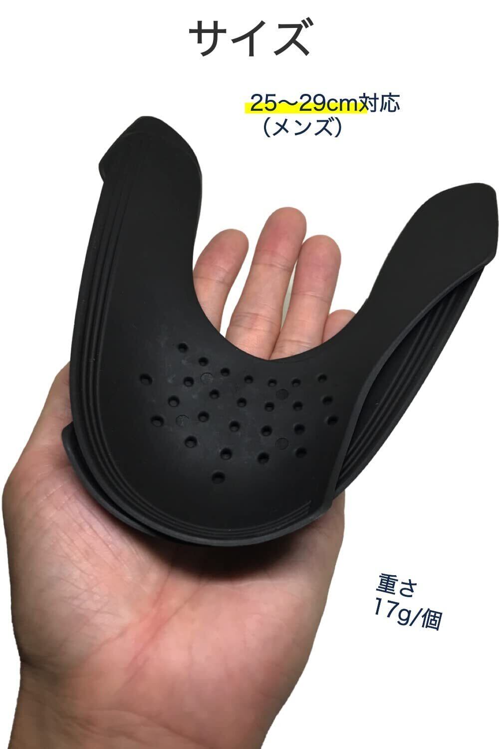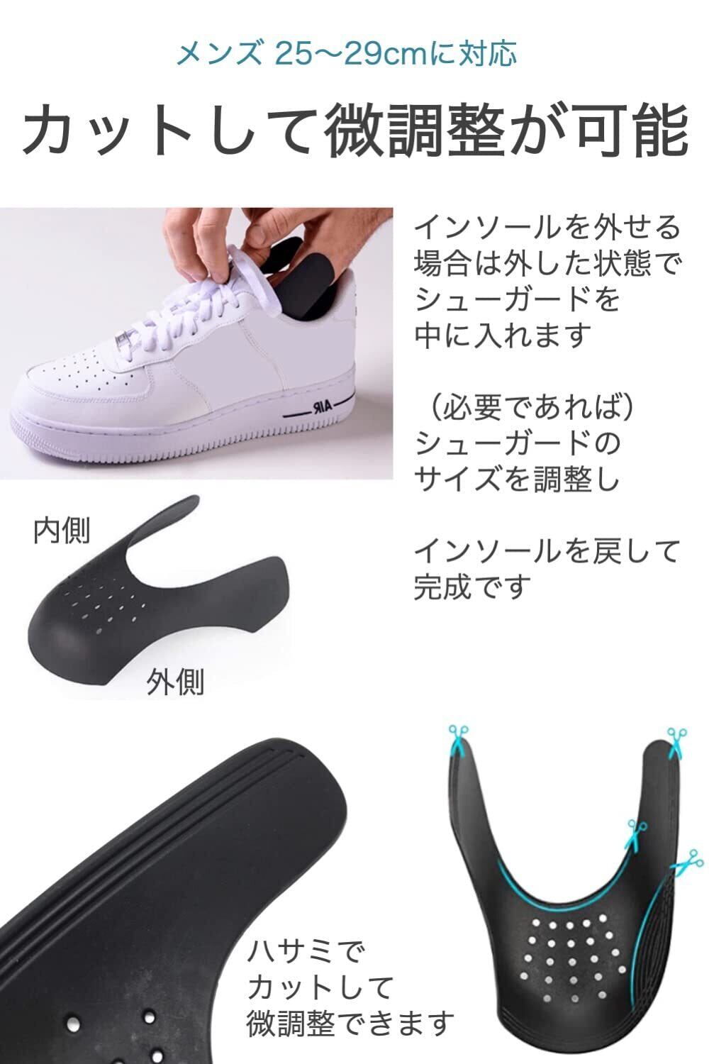 スニーカーの先端を保護するシューガード 黒 メンズ 1組 プラスチックを内部に入れて履きジワを防止 カットしてサイズ調整もできます 靴サイズ、25〜29cm対応