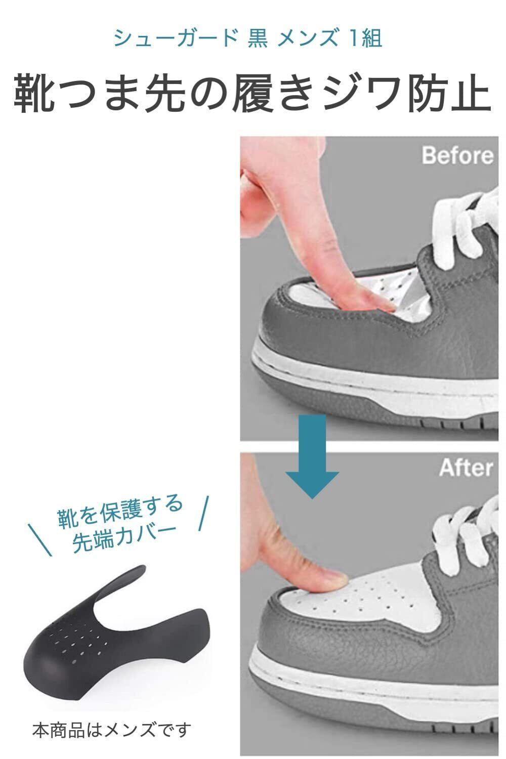 [wumio] シューガード 黒 メンズ 1組(2個) セット スニーカー つま先 保護 靴 履きジワ 防止 しわ シューケア シューズガード シューキーパー つま先シールド