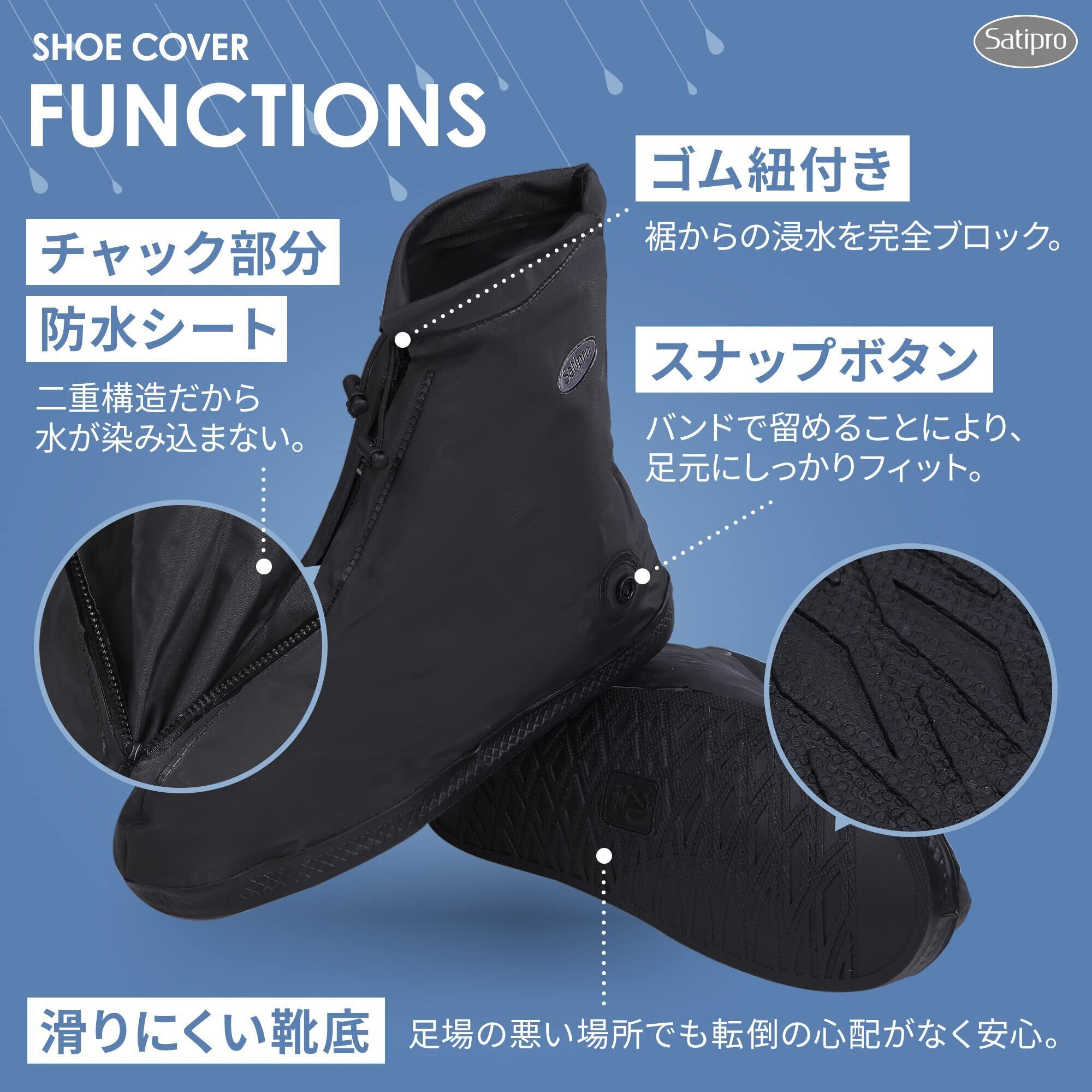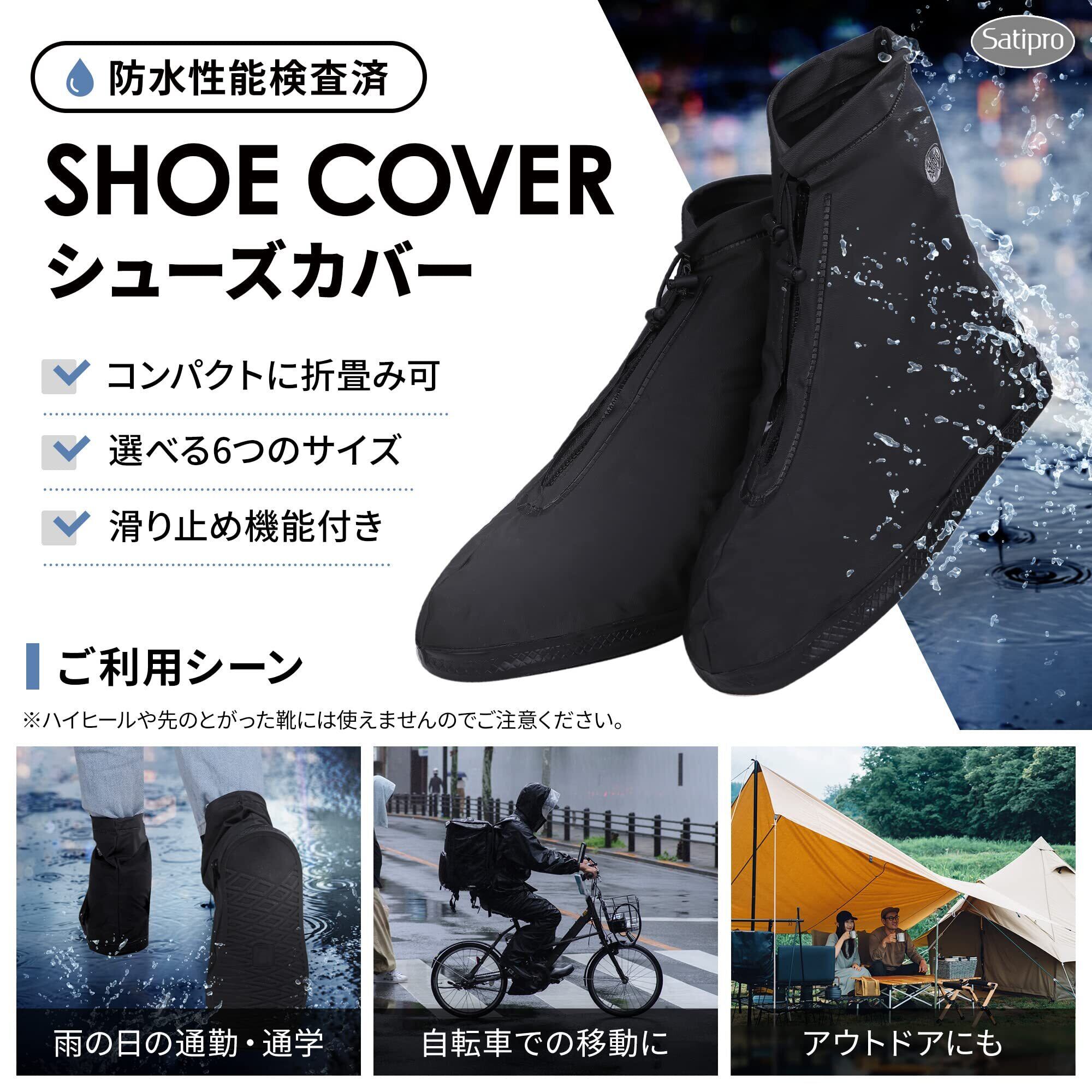 [Satipro] 国内防水検査合格 シューズカバー 防水 レインシューズカバー 靴カバー 雨 通勤 通学 自転車 バイク アウトドア キャンプ 日本語説明書付き 1足分入り