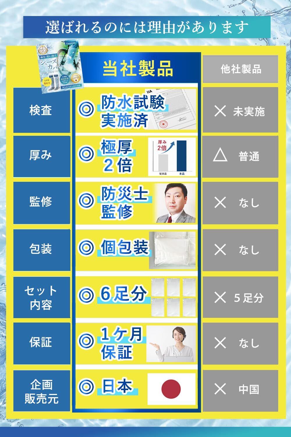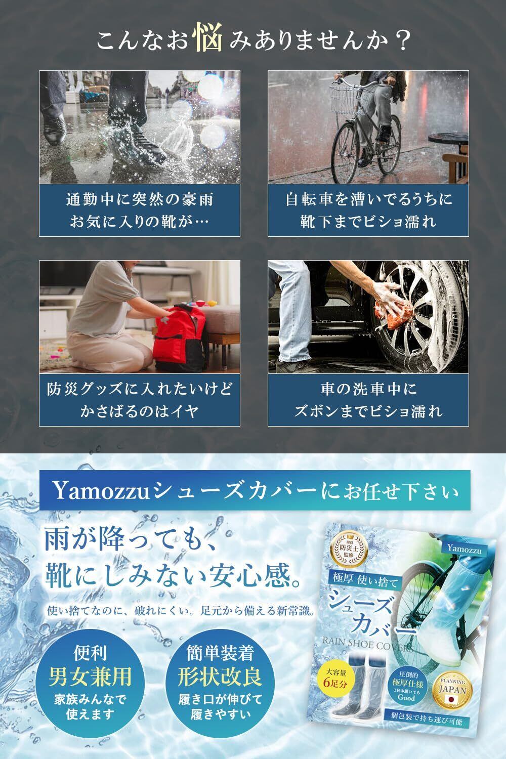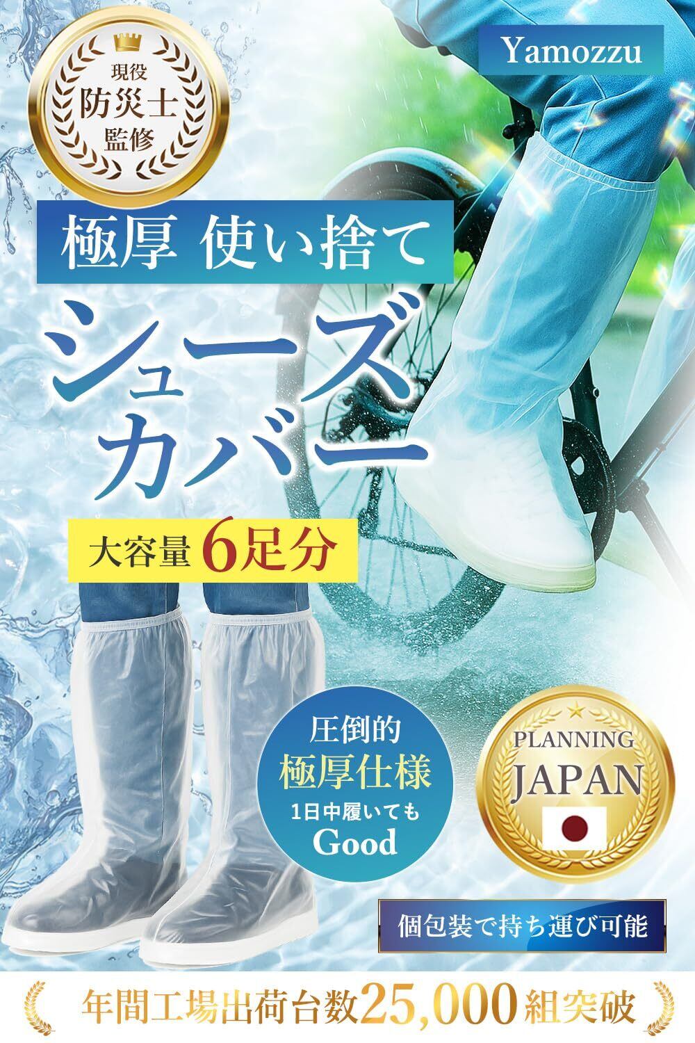 [ヤモッズ] 【防災士監修】 靴カバー レインシューズカバー 12枚6足 使い捨て 極厚【防水検査済み】 雨用 汚れ防止 自転車 バイク