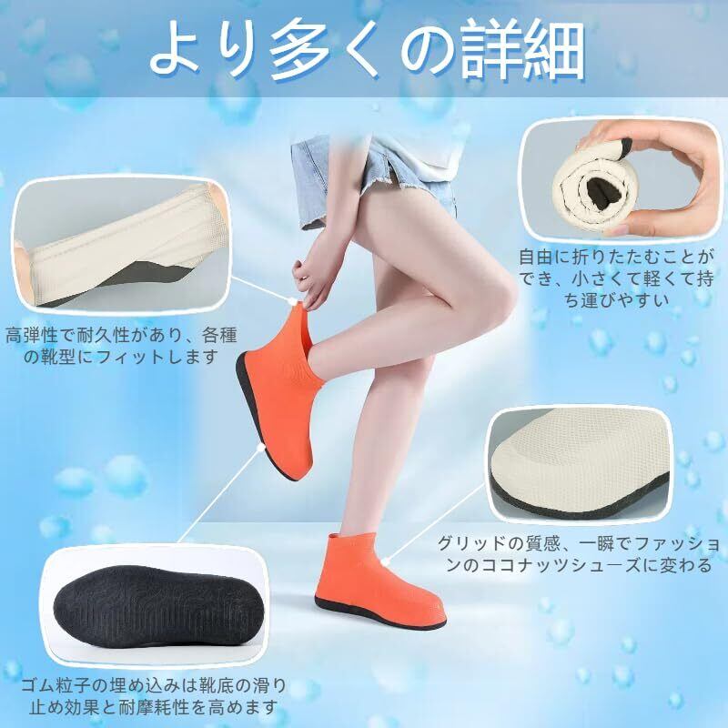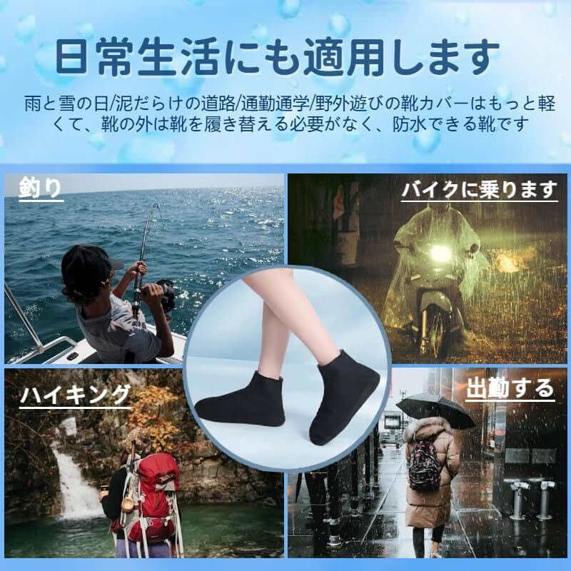 【滑り止め設計】底部には摩擦力を高めて滑りにくい凹凸加工が施されており、濡れた場所でも滑りにくく安全です! シリコン製シューズカバーは泥はね、雨の日、湿地、庭園などのシーンに適しています。 雨の日の外出や、ビーチ、キャンプ、ハイキング、釣り、旅行、サイクリング、登山、ハイキングなどのアウトドア活動に最適です。