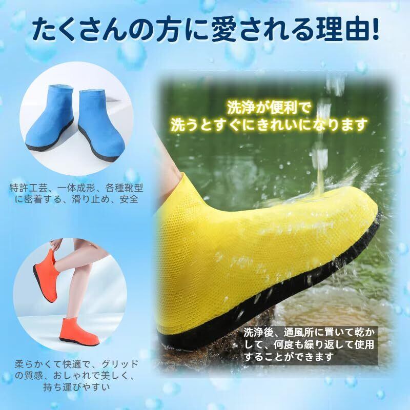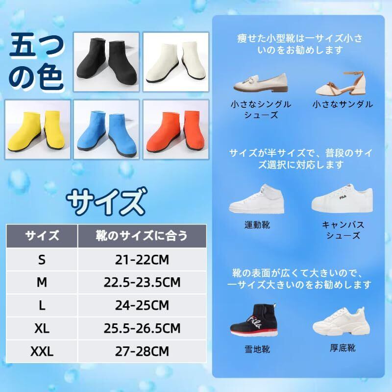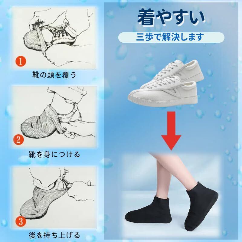 【一体成形隙間ない】高品質の天然ラテックス素材を採用し、安全、環境に優しく、無臭、伸縮性が高く、引っ張っても変形せず、靴にぴったりと貼り付きます。 一体成形シール設計で隙間がありません。着脱が簡単。 雨水の浸入を防ぎます。 通勤・通学にとても適しています。