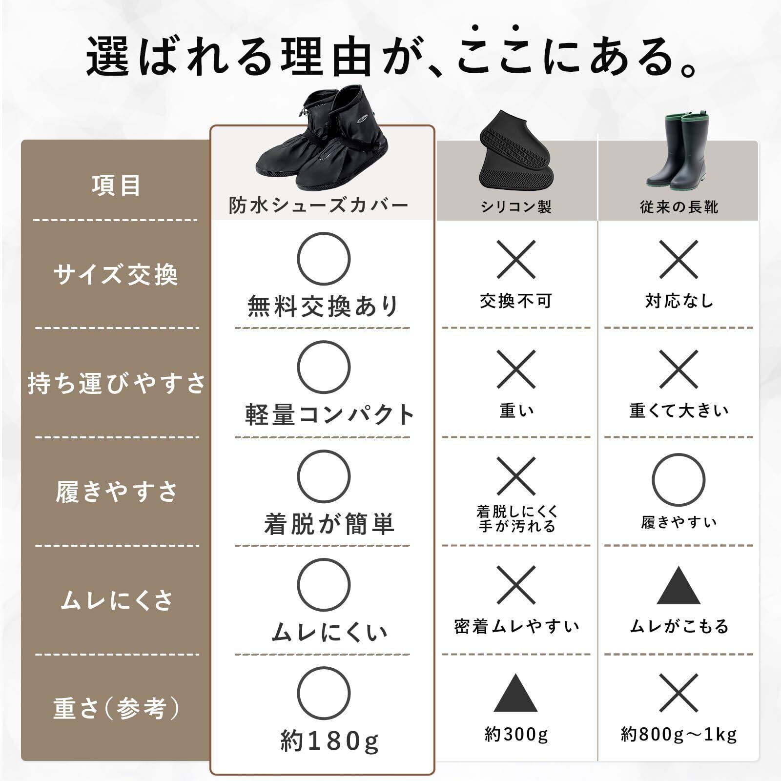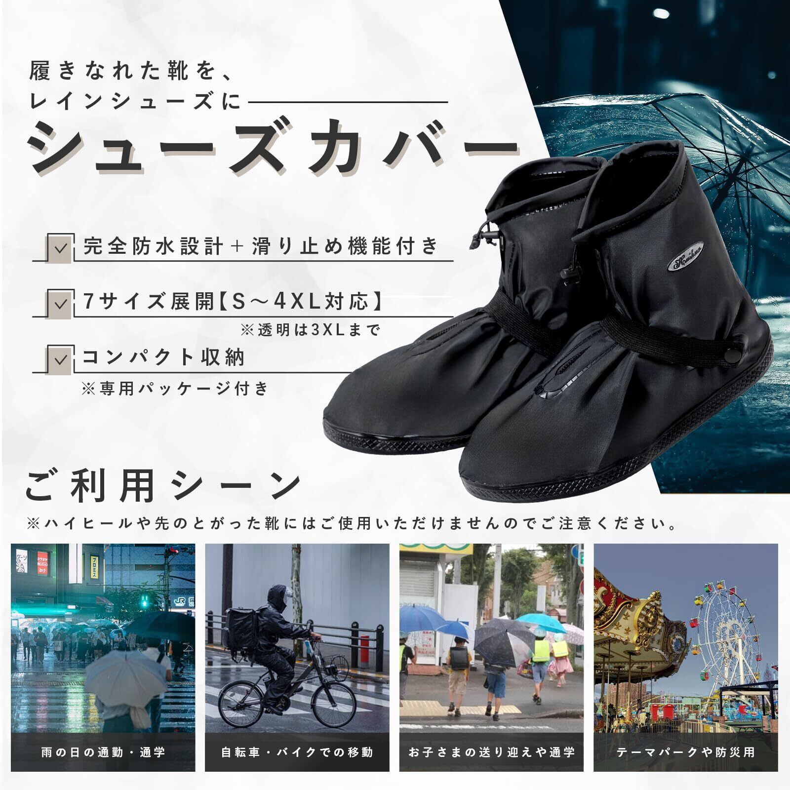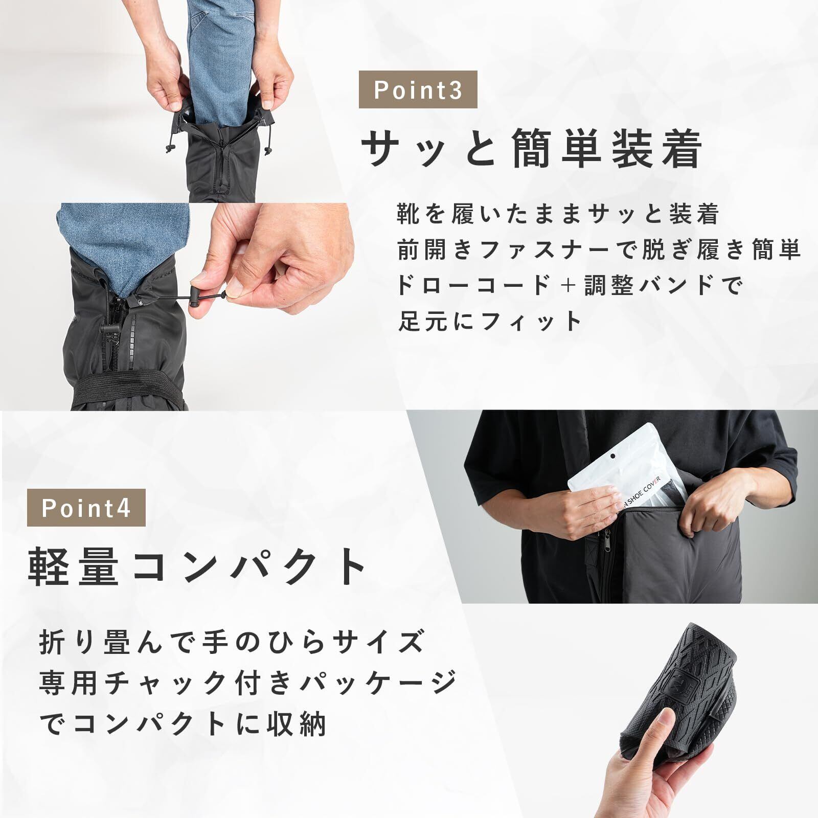 【強力防水で靴を守る】 通勤・通学や旅行、雨の日の外出でも安心。高品質PVC素材を使用し、雨水の浸入をしっかりブロックします。