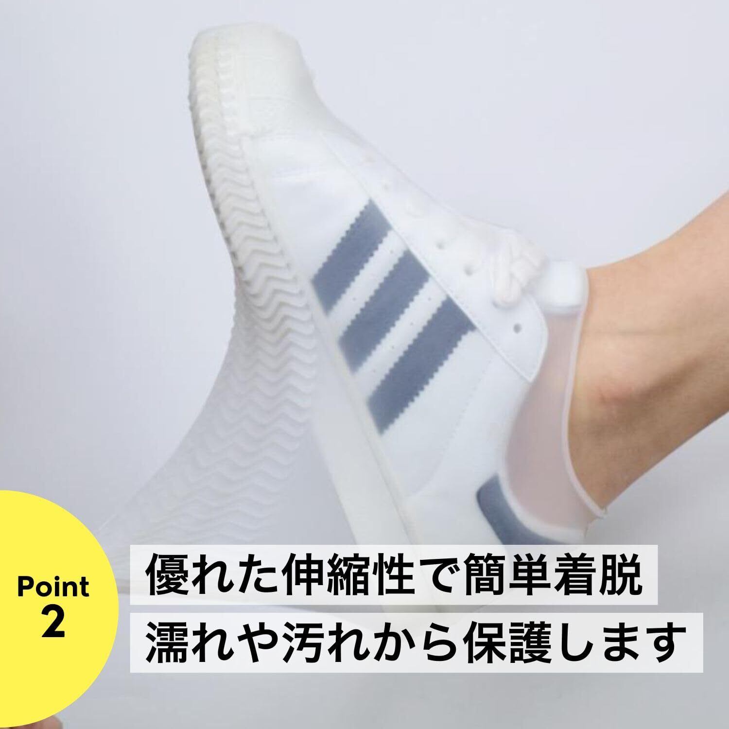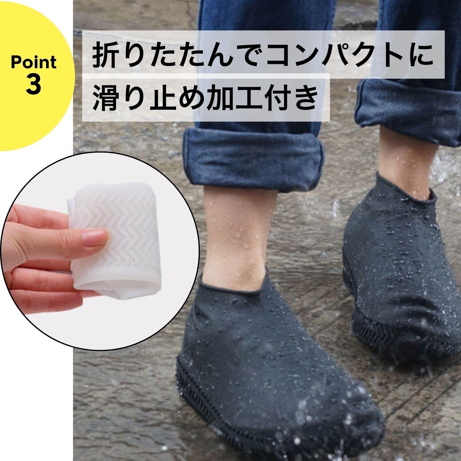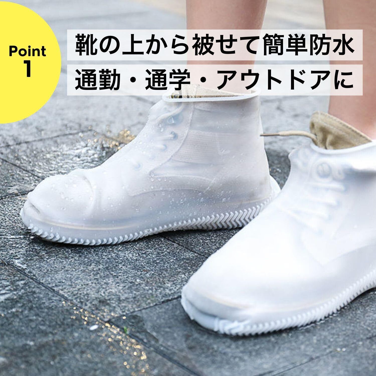 【防水シューズカバー】靴の上から被せるだけで防水効果を発揮し、お気に入りの靴を濡れや汚れから保護します。通勤や通学、アウトドアにも最適です。※ヒールがある靴、厚底の靴、つま先の尖った靴、金具など金属の装飾がある靴のような靴にはご使用いただけません。