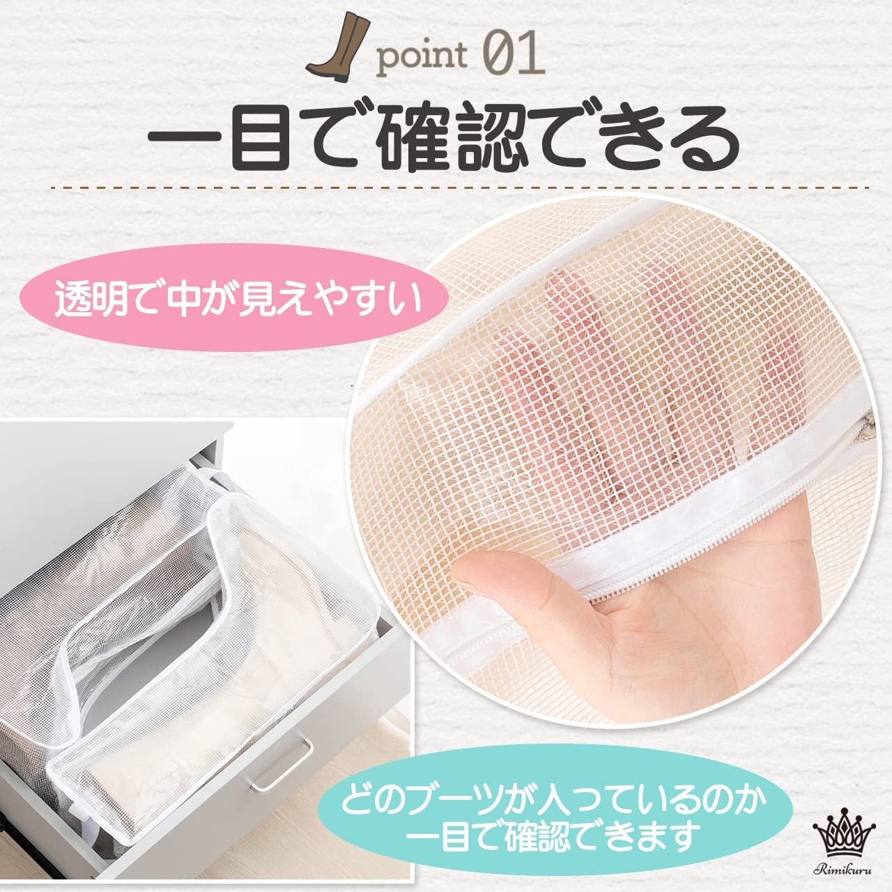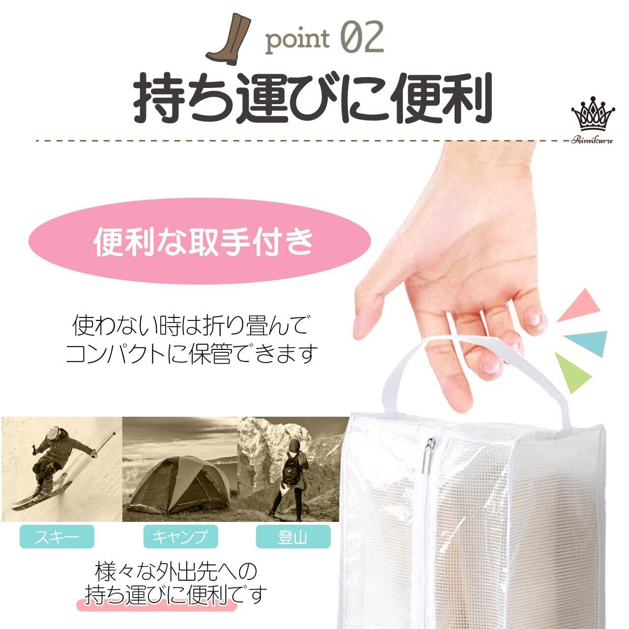 Rimikuru シューズケース ブーツ 収納 袋 ロング ショート カバー 靴 2足セット 透明 (透明ホワイト・ロング)