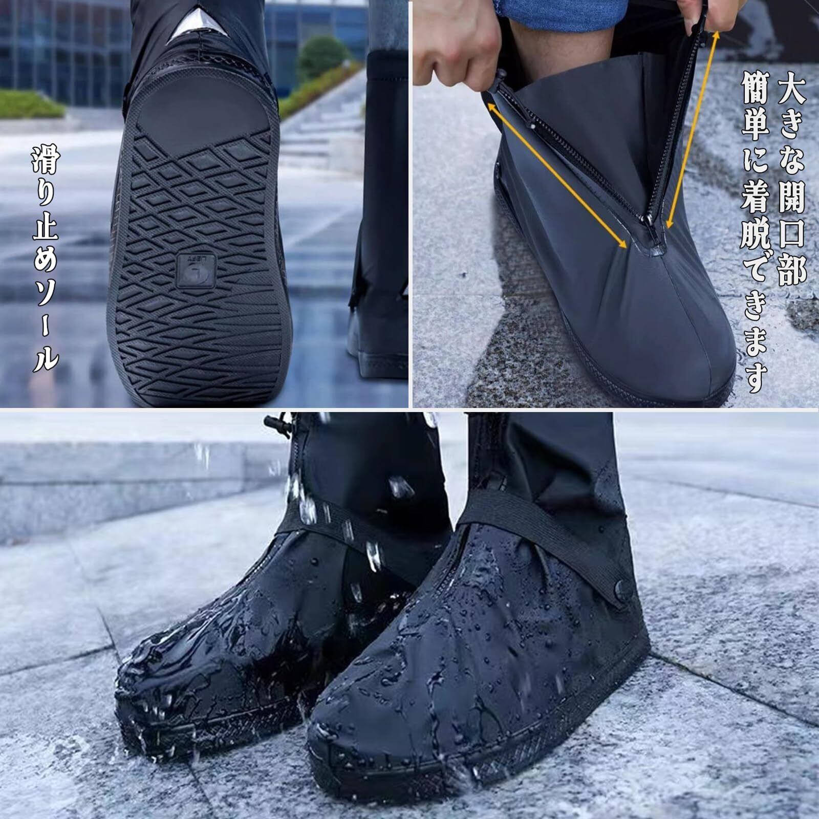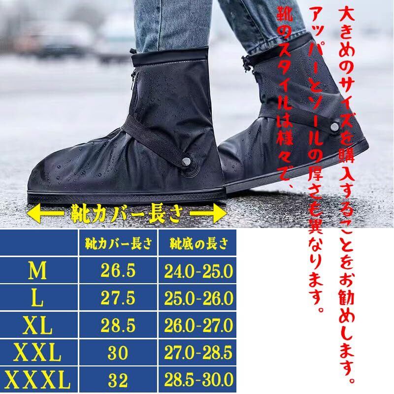 高い防水性レインシューズカバーの素材:ファスナーと内側の扇状シート防水層の二重防水設計がしっかりと水や汚れなどの浸入を防いてくれます!突然の雨でも大切な靴を守る防水レインカバーです。【表地】完全防水PVC【底材】合成ゴム【靴カバーサイズ】M,L,XL,XXL,XXXL。ワンサイズ上を購入することをお勧めします!「注意:ご使用する靴の底面の長さと幅を計測し底面の長さと幅+1.5cm程度を目安にお選びください。よくわからない場合は、さまざまな種類の靴を使いやすくするために、2足を購入することをお勧めします(1足は通常のサイズを選択し、もう1足は大きいサイズを選択します)。 」
