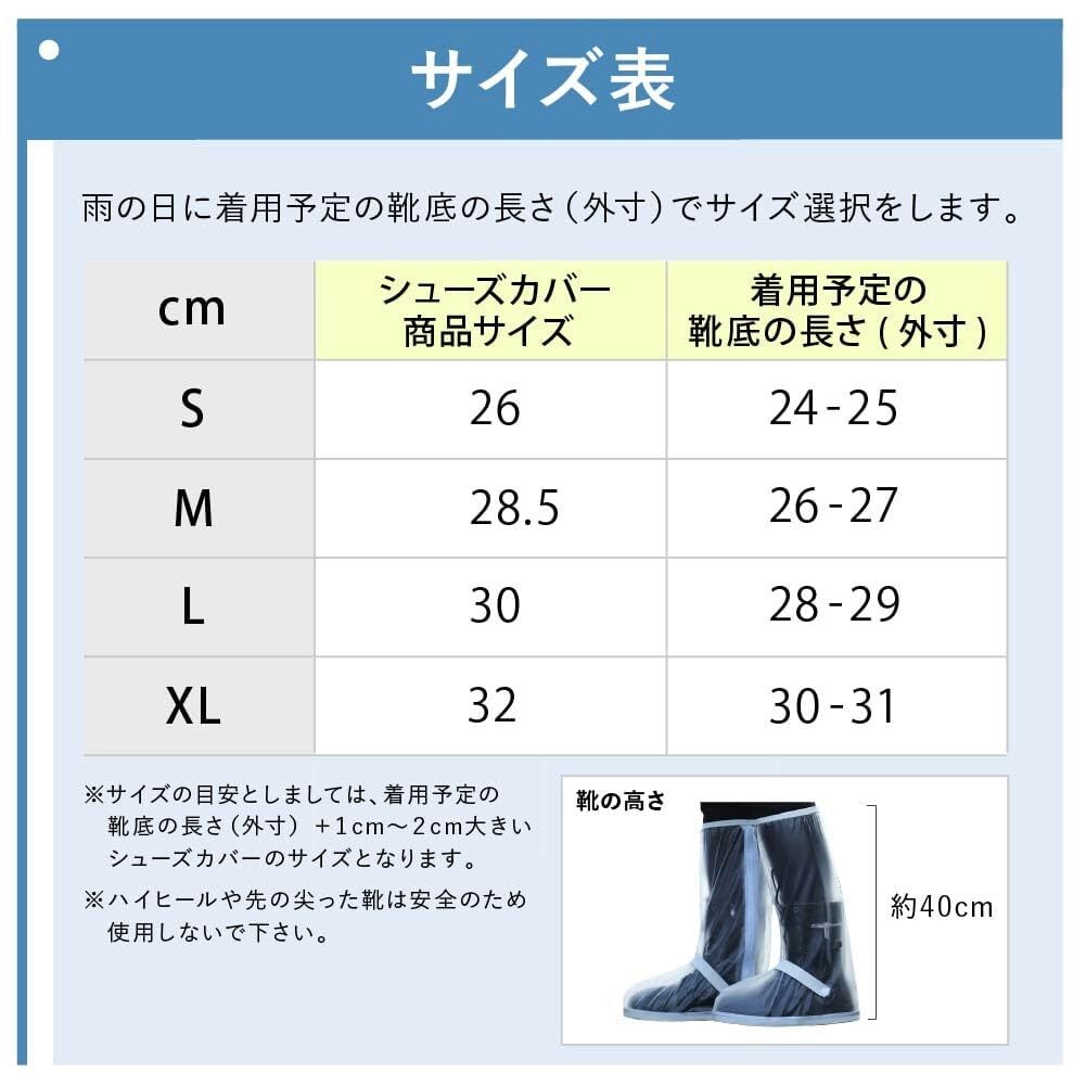 【サイズ選び】雨の日に着用予定の靴底の長さ(外寸)よりも、1~2cm程度大きいシューズカーバーを選択してください。