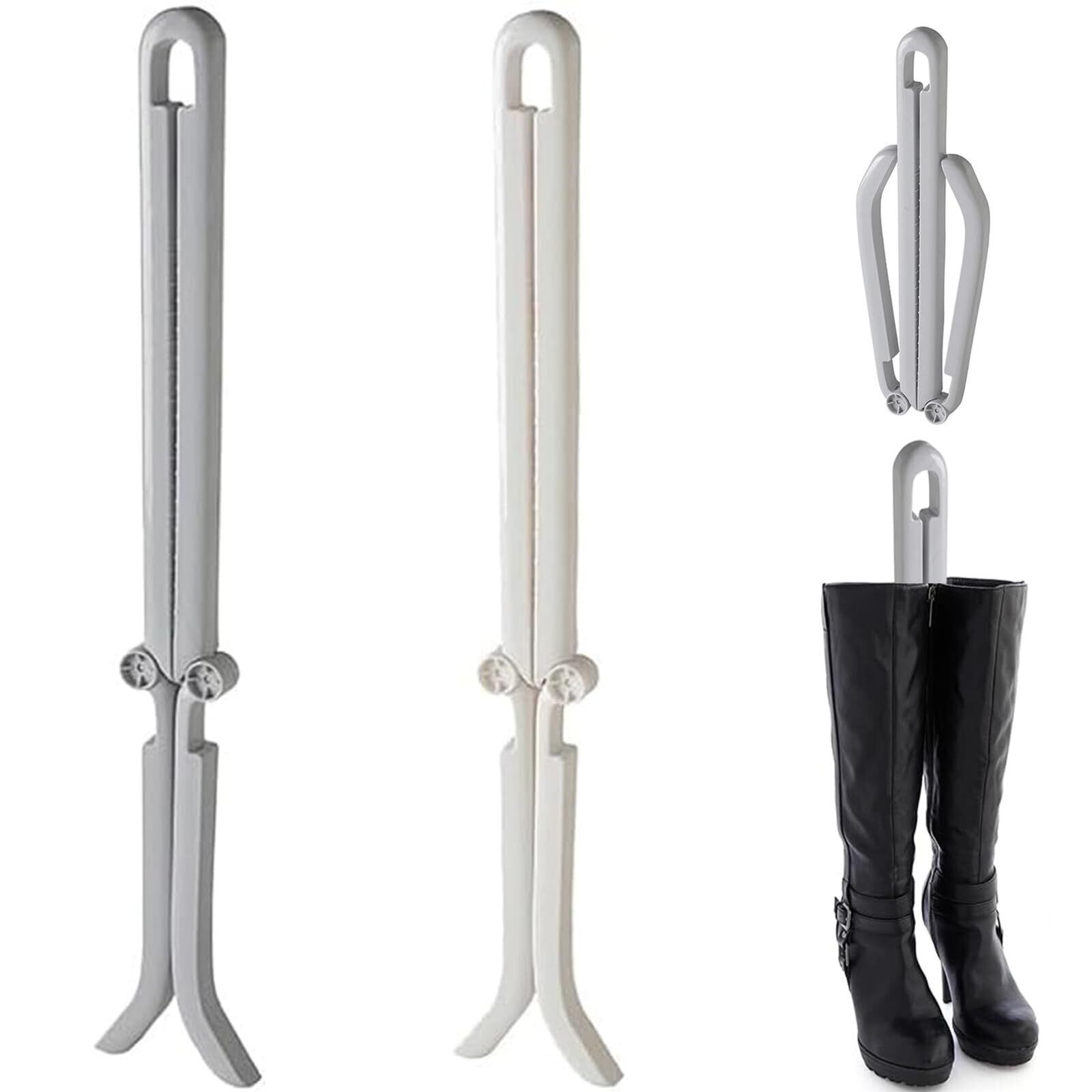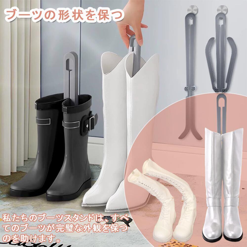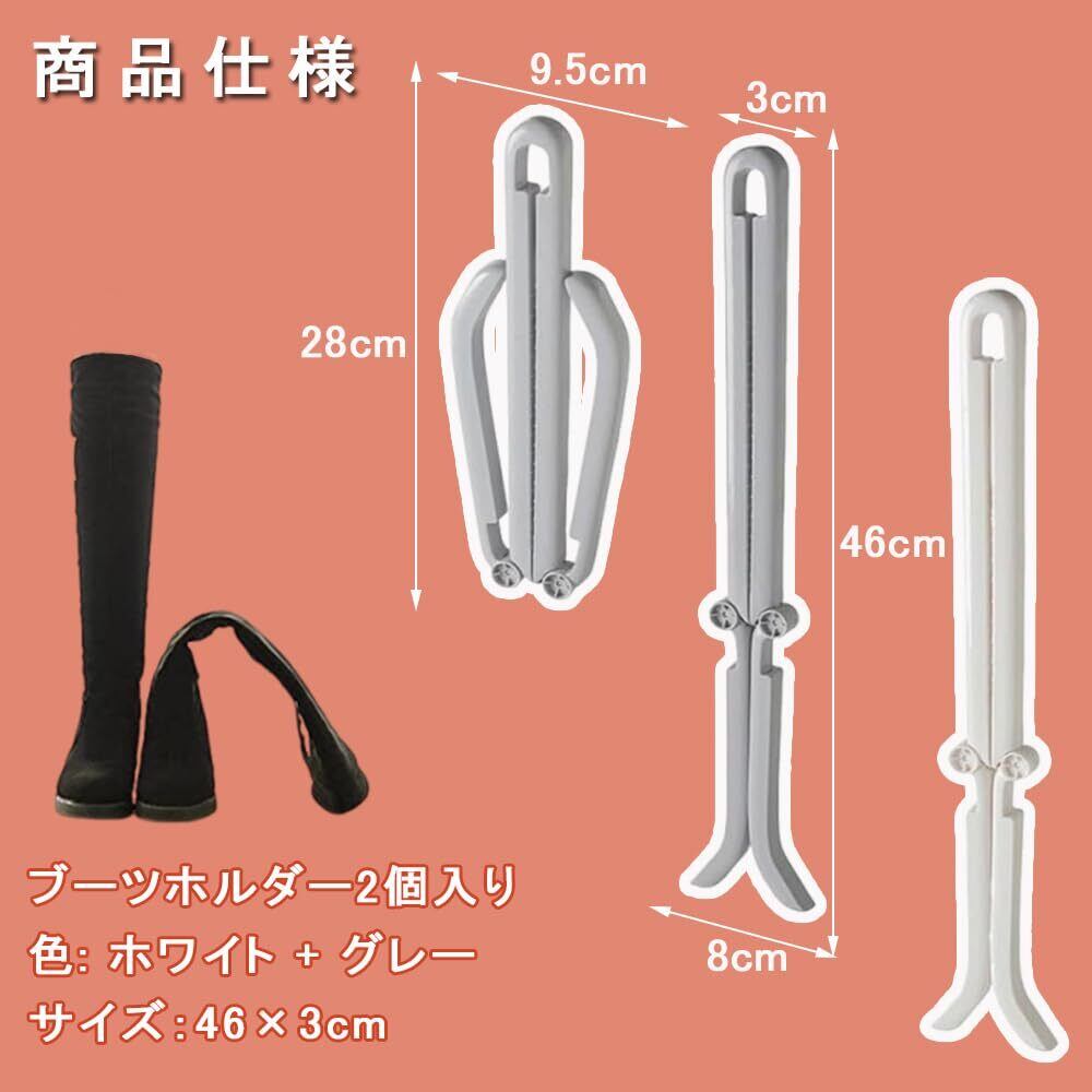 [KALOLINNA] ブーツキーパー クリップ 靴 ブーツ形状リテーナー 2個セット ブーツスタンド 折りたたみ式 変形防止 消臭 ロングブーツ 長靴 ブーツシェイパー ブーツ収納ホルダー 長さ46cm (ホワイト+グレー)