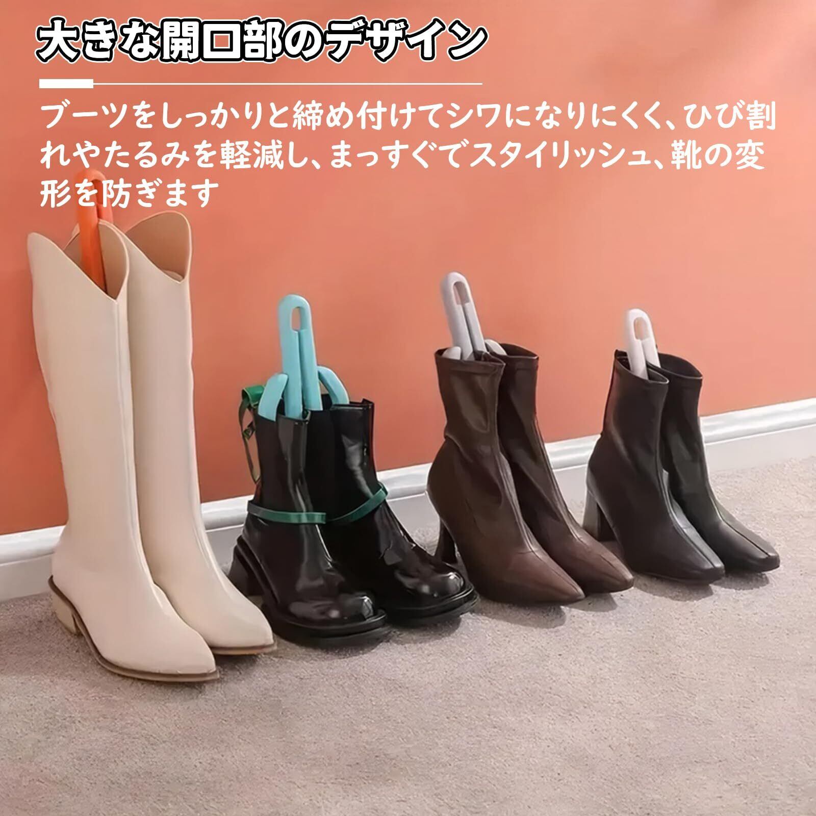 【目的】:大きな開口部のデザインがブーツをしっかりとクランプするので、ブーツにしわが寄りにくく、ひび割れやたるみを軽減し、まっすぐでスタイリッシュで、靴を簡単に変形したり損傷したりするのを防ぎます。
