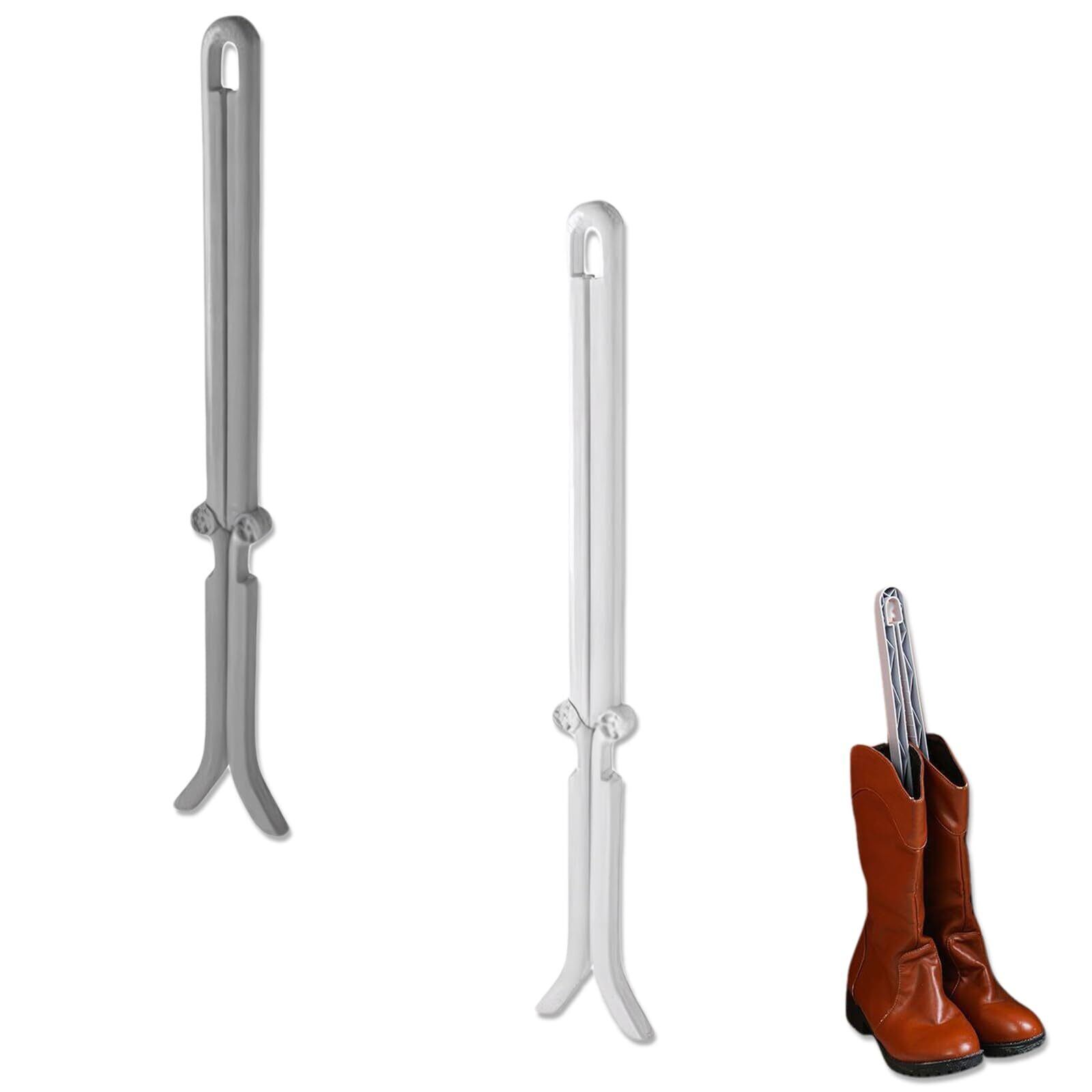 [DELUXEFOX] ブーツキーパー ブーツ形状リテーナー (2個セット) ブーツサポートフレーム クリップ 靴 収納 ブーツキーパー ロング 折りたたみ式 ブーツスタンド ニーハイシューズクリップ シワ防止 変形防止 長さ46cm (ホワイト+グレー)