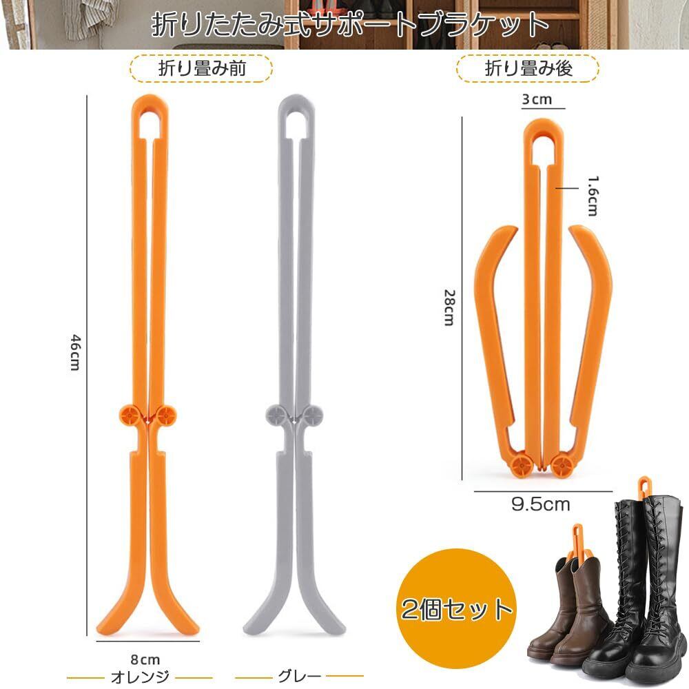 [RUITING] ブーツキーパー クリップ 折りたたみ式 サポートブラケット2個セット ブーツ形状リテーナー 長靴 短靴 兼用可能 ブーツスタンド ブーツサポートフレーム クリップ 靴 PP素材 損傷軽減 変形防止 収納便利 46*3*8CM(オレンジ+グレー)
