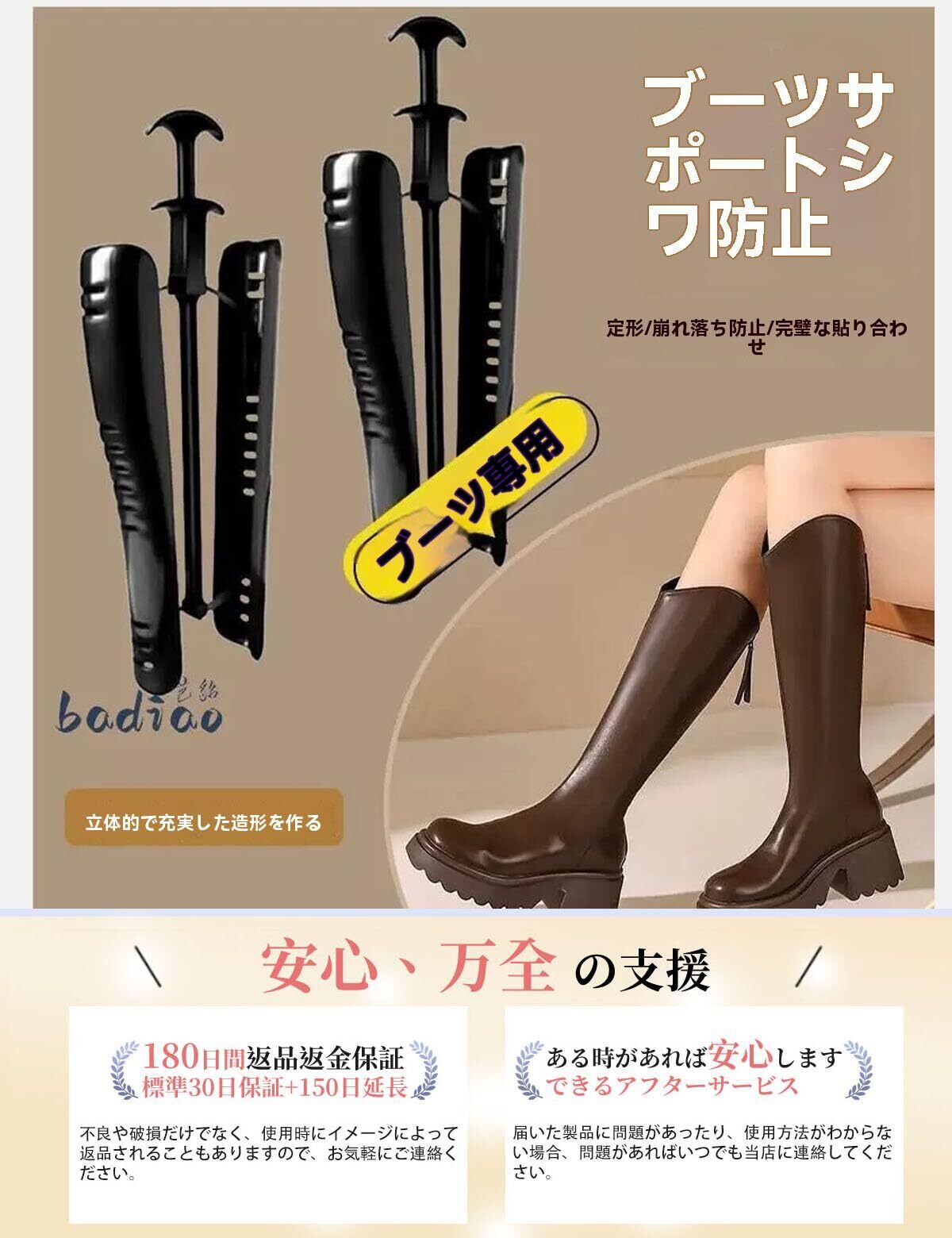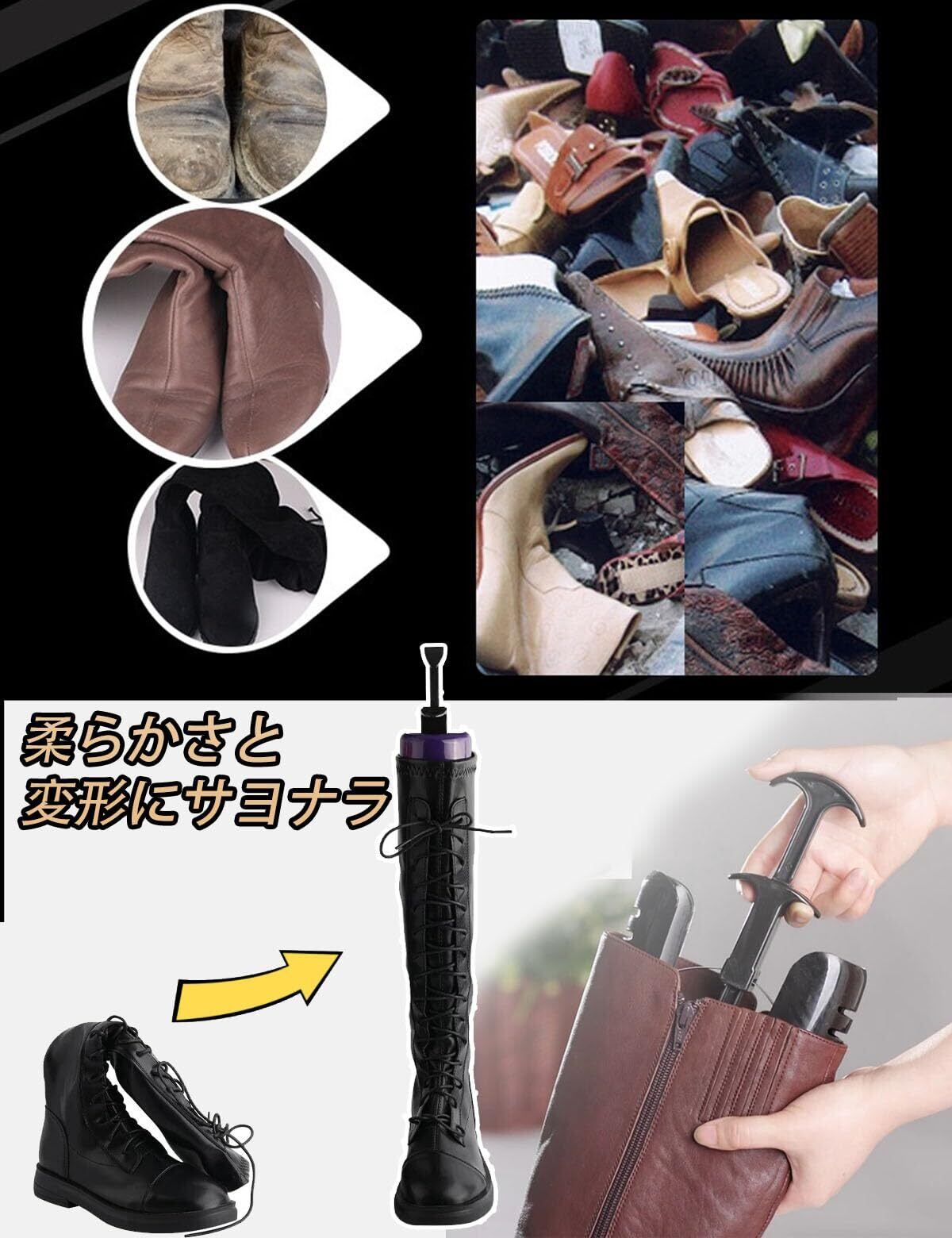 ブーツキーパー 型崩れ防止 ロングブーツ 長靴 通気 シワが伸びて倒れない 省スペース 自動調整 乗馬ブーツ 長靴 レインブーツ ミリタリーブーツ
