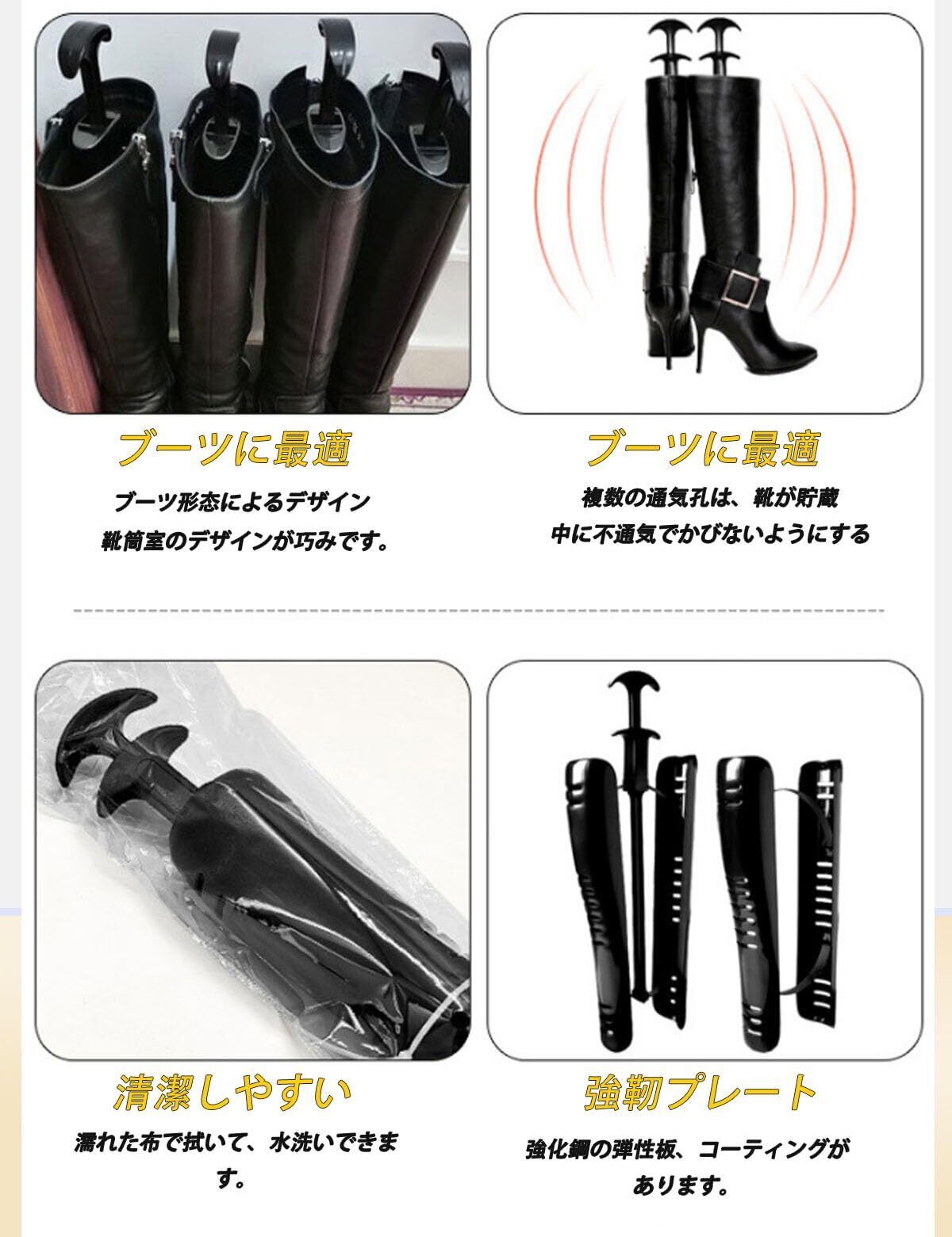 [JinxoGleam] ブーツキーパー 型崩れ防止 ロングブーツ 長靴 通気 シワが伸びて倒れない 省スペース 自動調整 乗馬ブーツ 長靴 レインブーツ ミリタリーブーツ