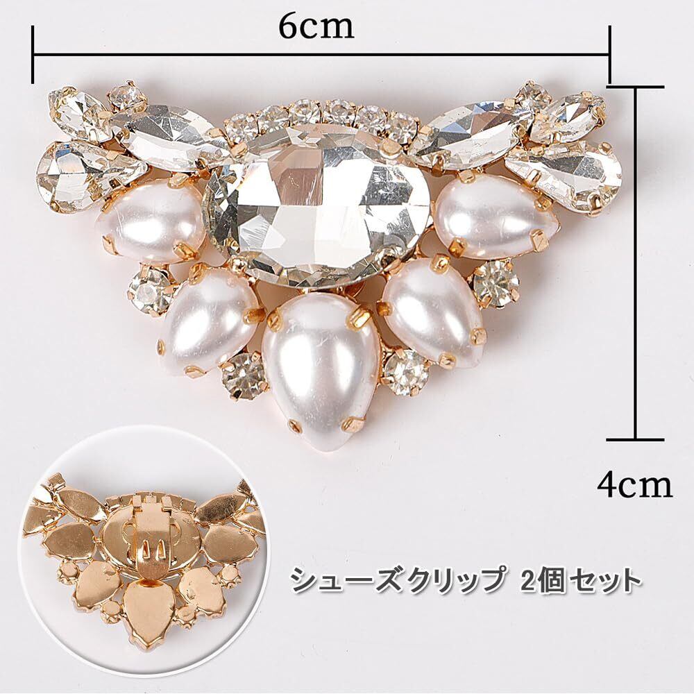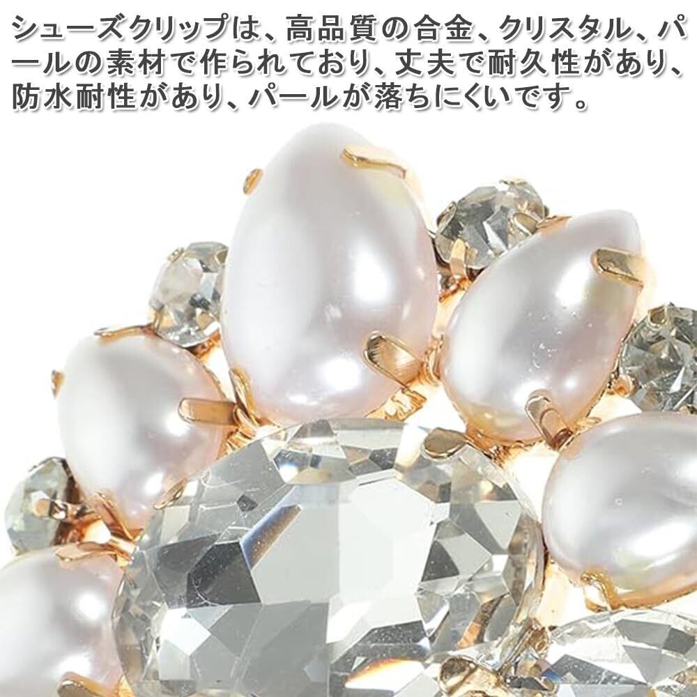 【高品質な素材】シューズクリップは、高品質の合金、クリスタル、パールの素材で作られており、丈夫で耐久性があり、防水耐性があり、パールが落ちにくいです。これらの素材は光沢と贅沢感を呈し、お靴が長期にわたって高級感を保つことができます。