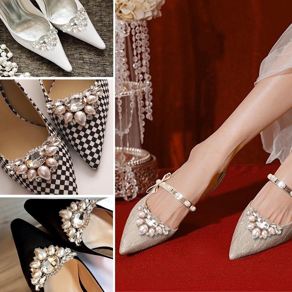 【ユニークなデザイン】このシューズクリップは、エレガントで輝くクリスタルとパールの素材を使用し、ユニークなデザインで、お靴に華やかで魅力的な外観を加えることができます。さまざまなスタイルのシューズクリップで、いつでもどこでもお靴の外観を変え、異なるスタイルを披露し。