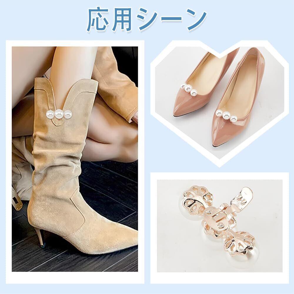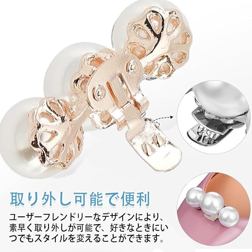 [Selinear] パンプス 飾り シューズクリップ 2個セット クリップ パール 靴アクセサリー 靴 コサージュ レディース シンプル ワンタッチ着脱 シューズバックル レディース シンプル 結婚式 パーティー(金)