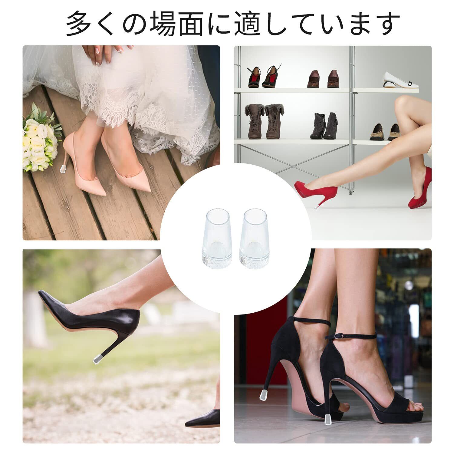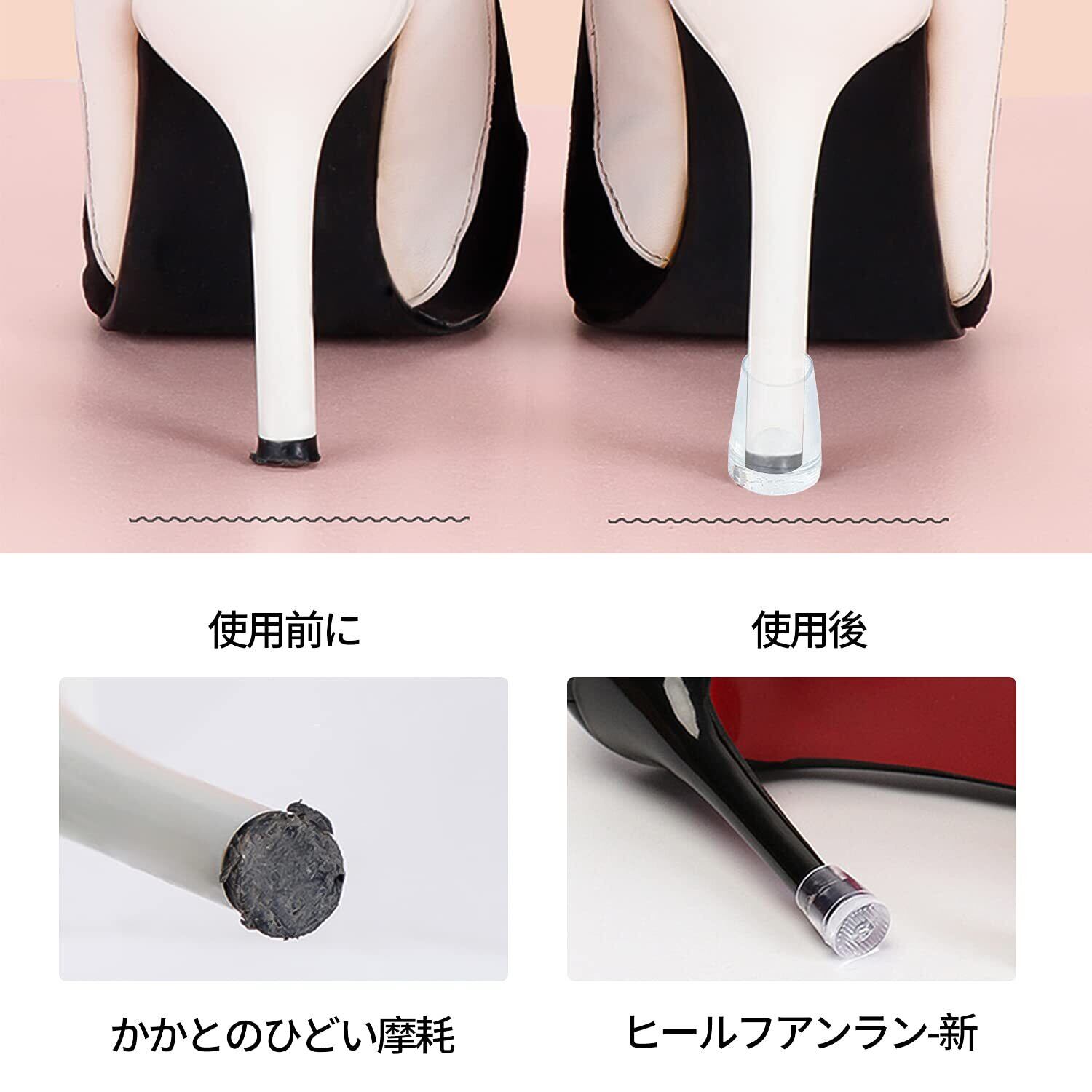 【耐久性ハイヒール保護】:これらのハイヒールは弾力性のあるゴムで作られており、ヒールのカチッとした音を抑える効果があります。底には余分な層を使って補強しています。かかとがより安定して快適です。