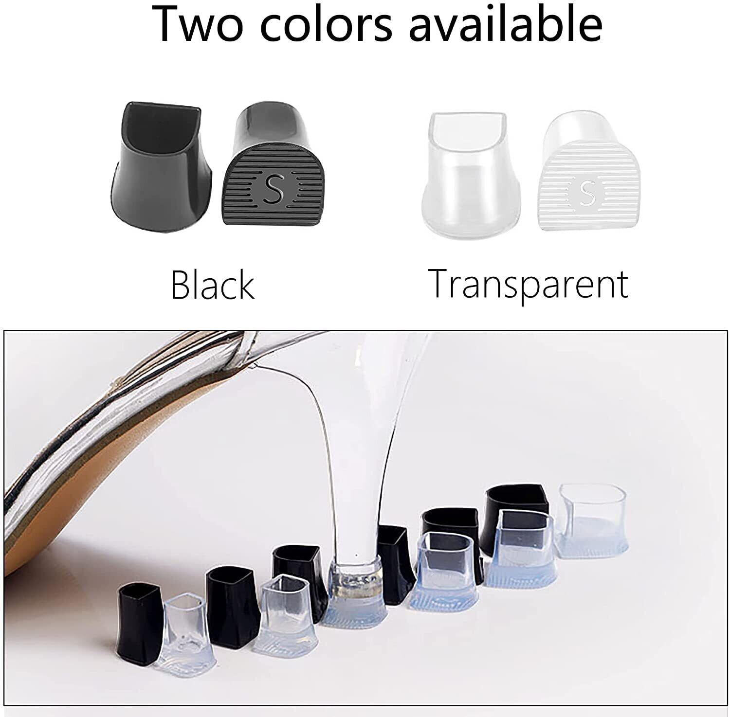 【2022最新】U字型 ヒールキャップ ヒールプロテクター 8足分セット 滑り止めシリコンソール アンチスクラッチヒール アンチノイズ ズ ダンス靴用 屋外パーティー、結婚式のイベント、ダンスに適しています 4サイズ XXS、XS、S、M( 黒&透明) | 無意味ステッカー