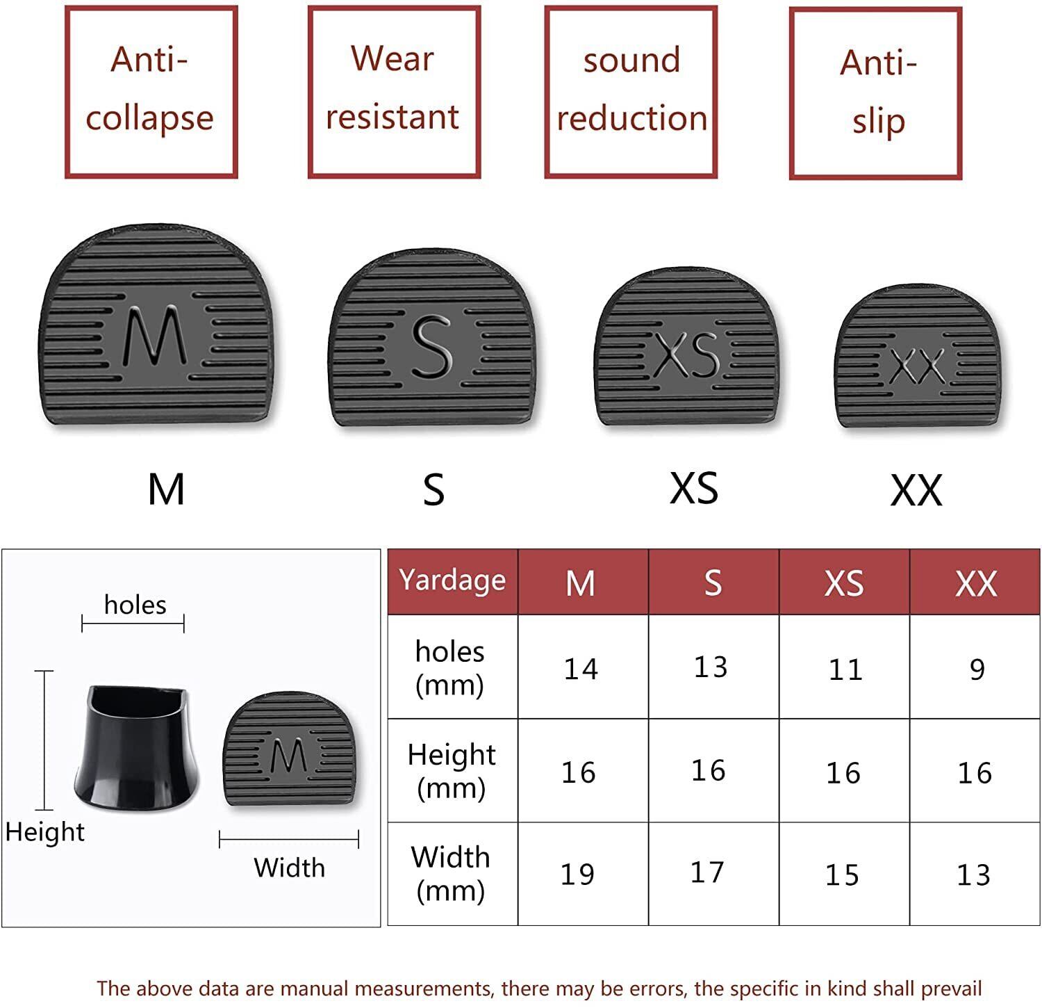 【セット内容】8*ヒールキャップ、4サイズ、XXS、XS、S、Mに1つずつ。対応するヒール、XXSサイズ:直径7-8mmに対応。 XSサイズ:直径9mm〜10mmに対応。 Sサイズ:直径11mm〜12mmに対応。 Mサイズ:直径13mm〜14mmに対応。黒とクリアでご利用いただけます。