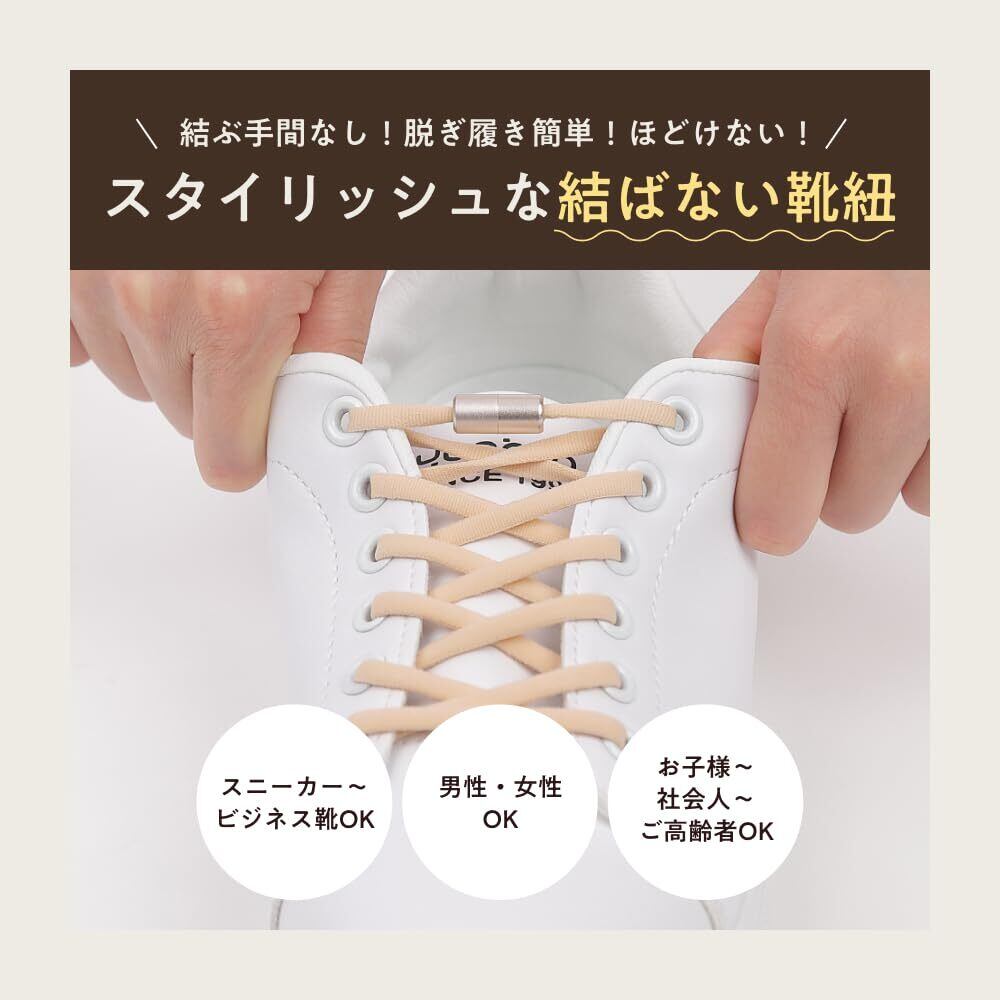 【豊富なカラーで足元を彩る!簡単イメチェン】白、黒などの定番色に限らず、16色の豊富なカラーバリエーションをご用意。 スニーカーの色に合わせて選んだり、あえて差し色にしたりと、気分やファッションに合わせて手軽に足元の印象を変えられます。結び目がないスタイリッシュな見た目 で、おしゃれ度もアップ。