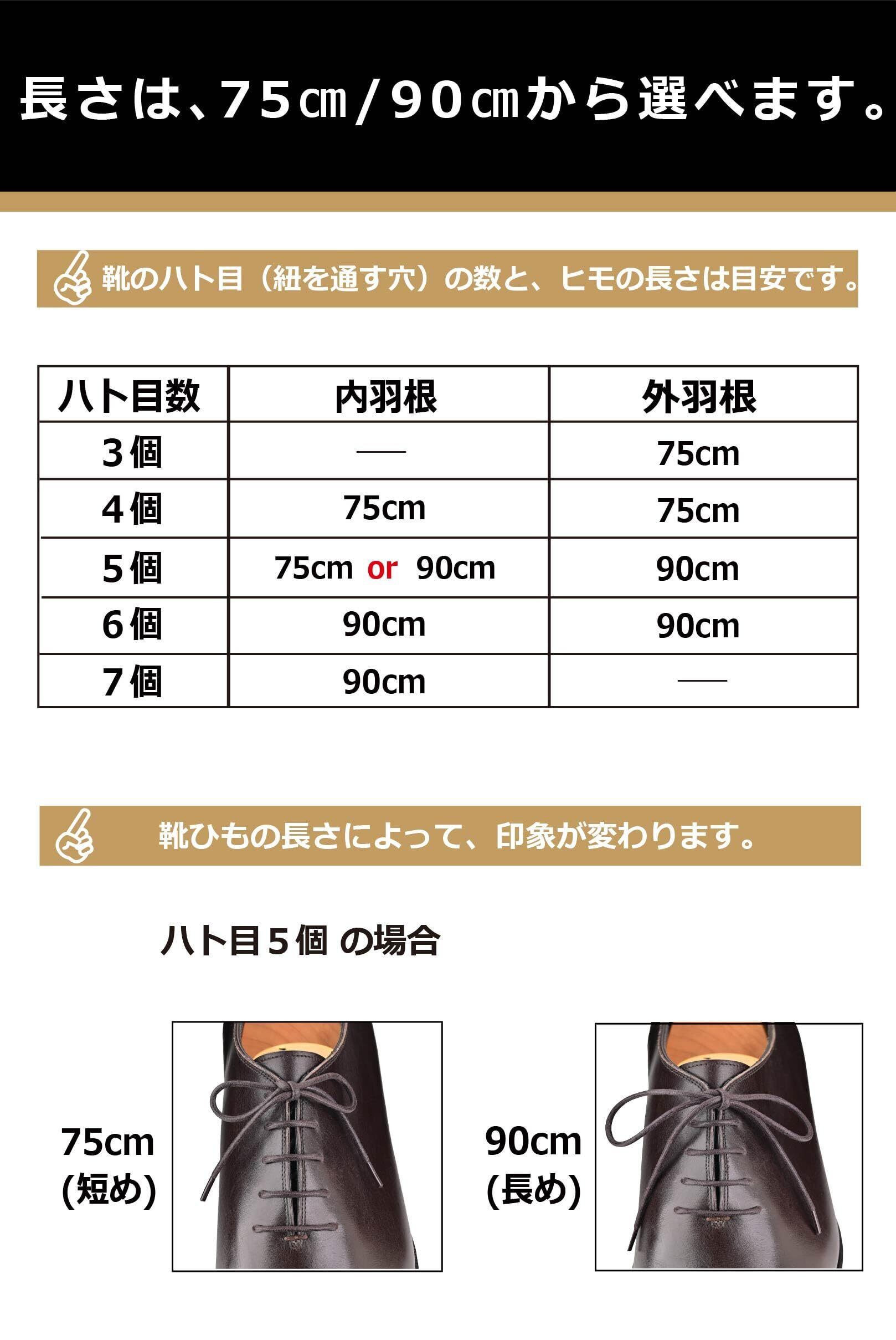長さは75㎝と90㎝の2種類から、太さは1.5㎜と2.0㎜の2種類から選ぶことができます。細目はよりエレガントに、太目だとカジュアルな印象になります。