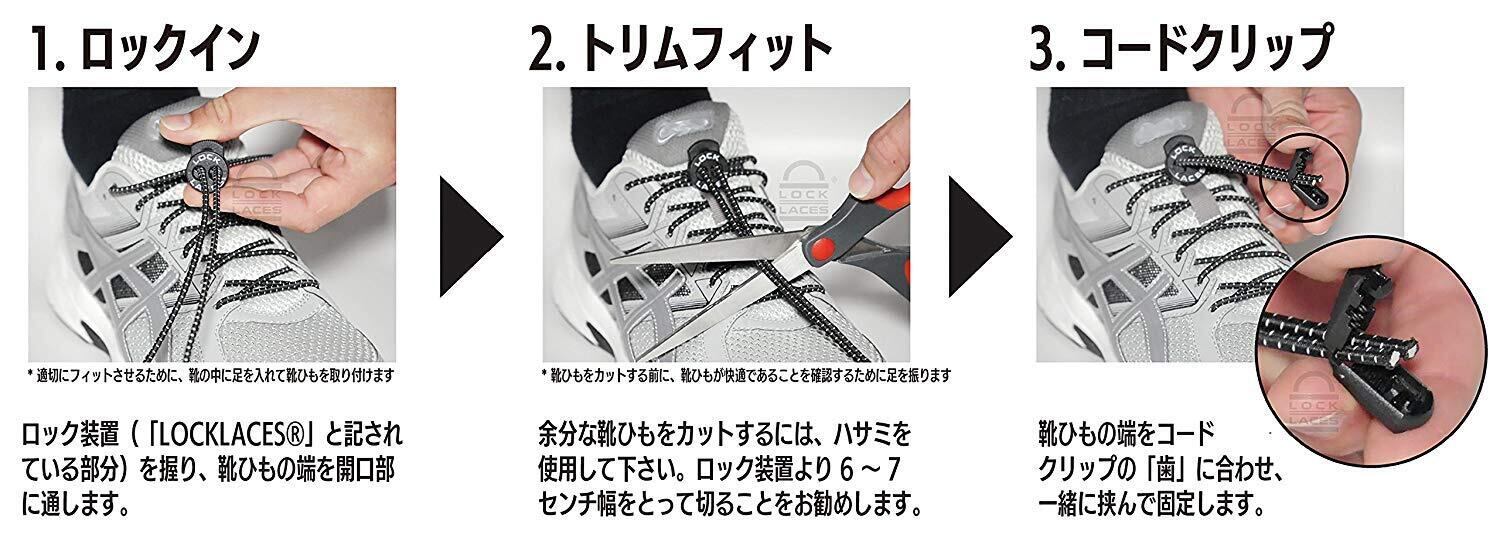 靴ひも 結ばない:スニーカー、テニスシューズ、ランニングシューズ等、くつひも が付いているどんな靴もスリッポン同様に変身。この 結ばない靴紐 はLOCK LACESがオリジナルで、世界各国で500万個以上の売り上げ。