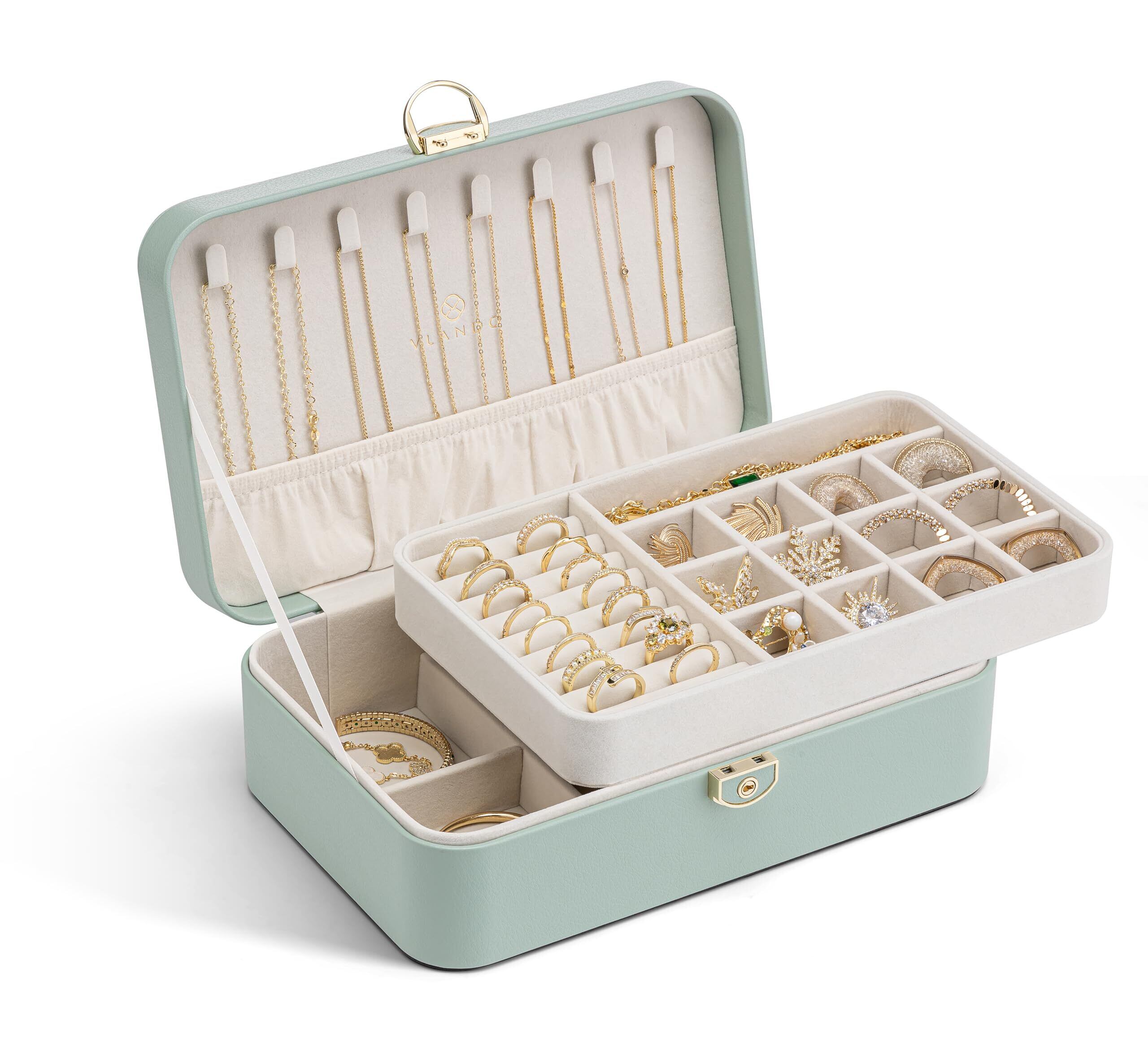 【安全性と保護性を兼ね備える】鍵付きの構造で、Vlando二段式ジュエリーボックスはあなたのジュエリーを安全に保護します。大切な品々を守るため、鍵を掛けて管理することができます。