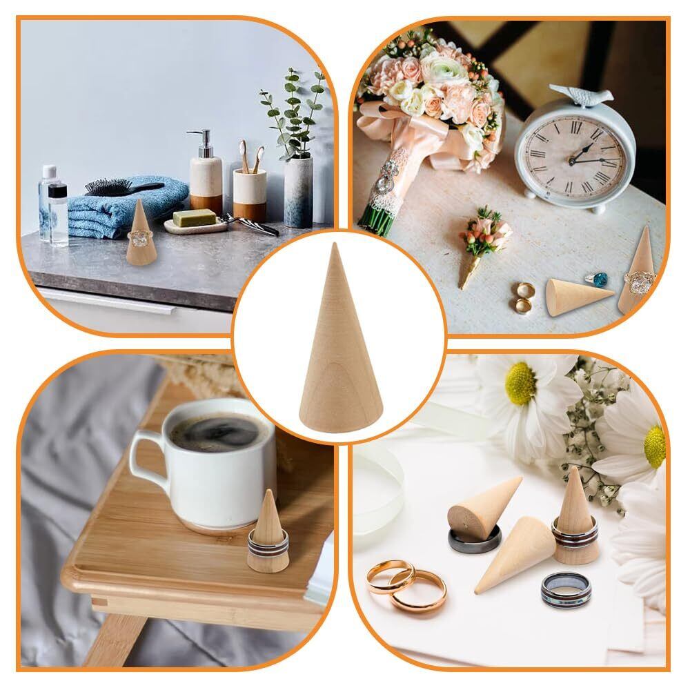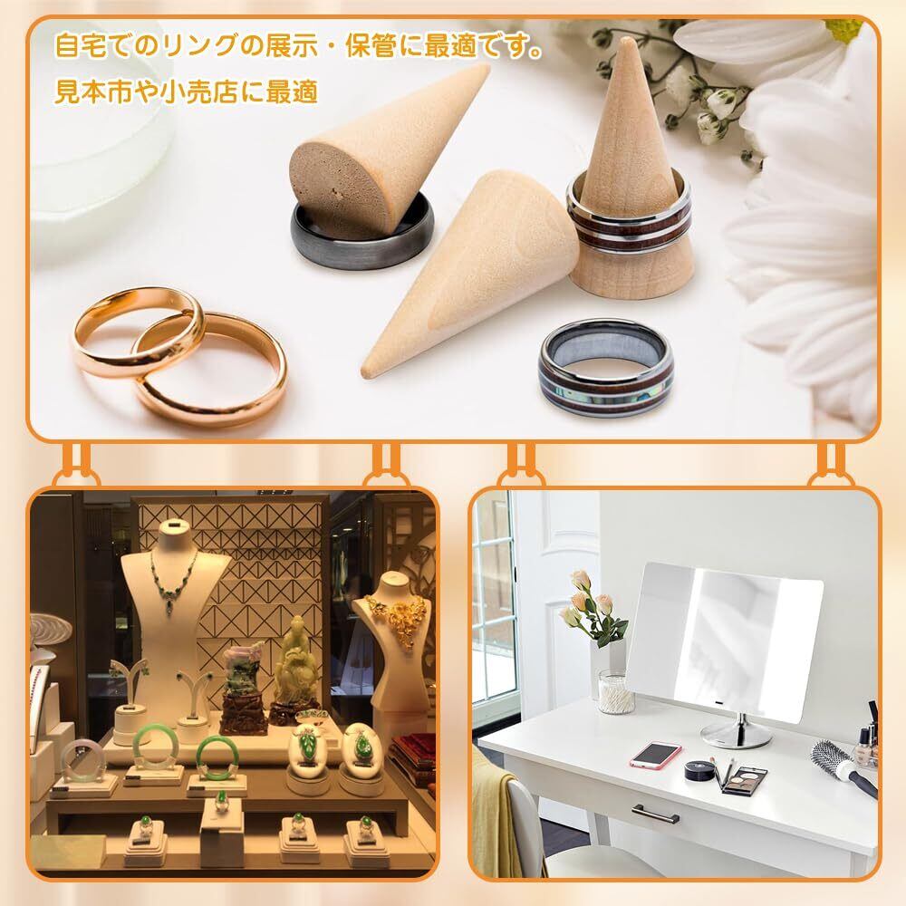 天然木 リングスタンド 指輪スタンド 指輪置き 空洞なし 木造 木製 円錐 指輪の保管 小物 整理 収納ラック飾り物 指輪展示 ディスプレイ DIY 手芸品 リング用 10個セット