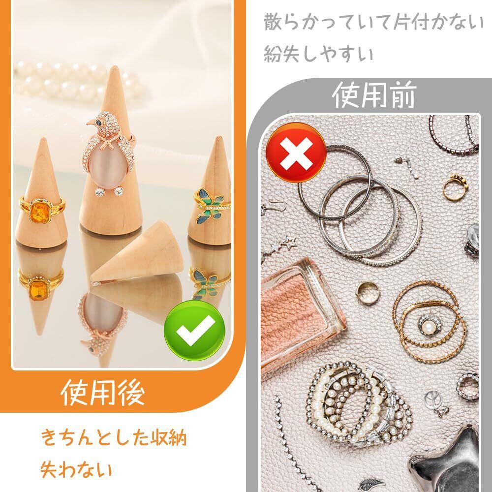 【適用範囲】:テーパー形状により、幅広いリングサイズに対応し、様々な平面で使用可能です。ジュエリーの収納に便利で、それぞれのジュエリーを完璧に、選びやすく、身につけやすくします。