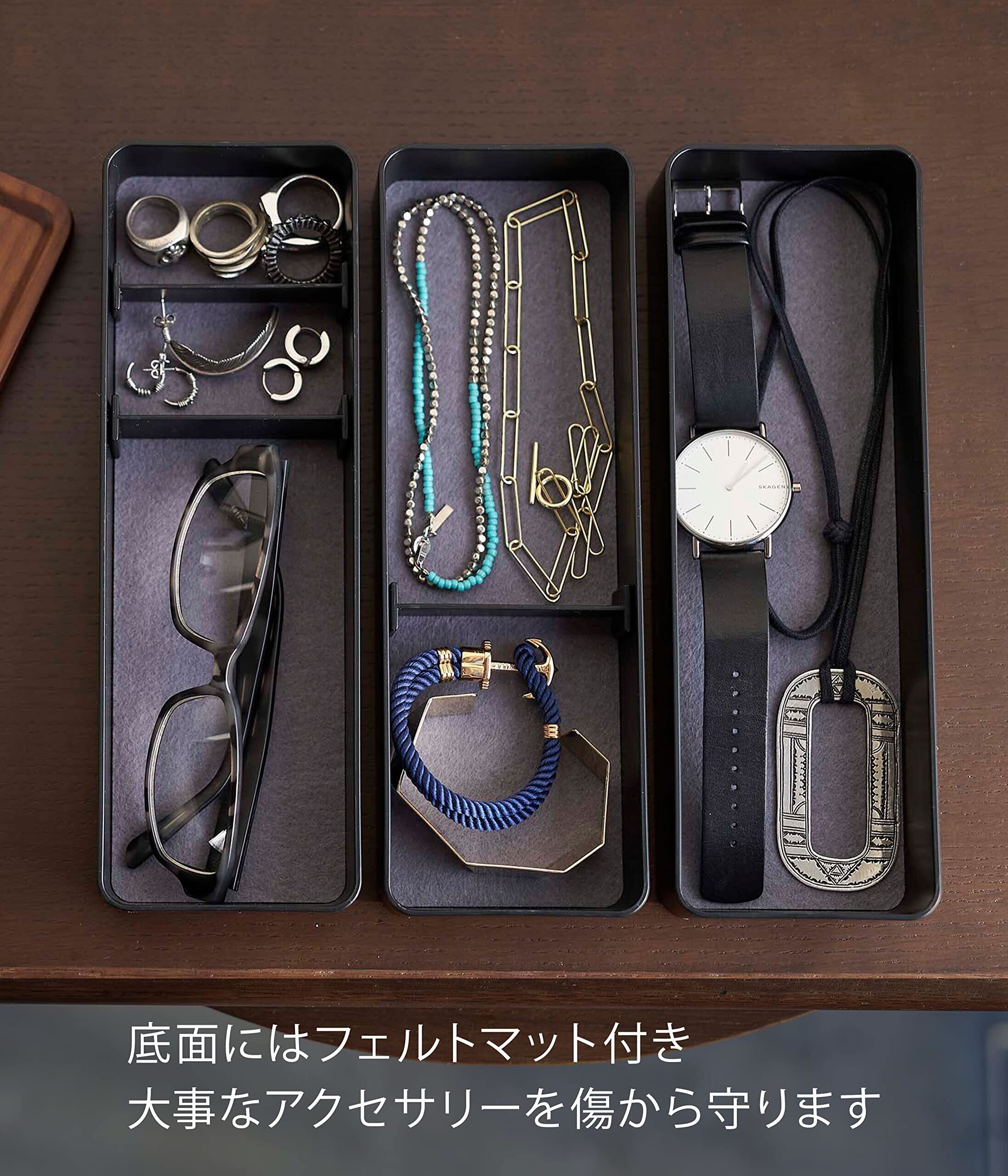 トレーにはフェルトマットが付いているので大事なアクセサリーを傷から守ります。