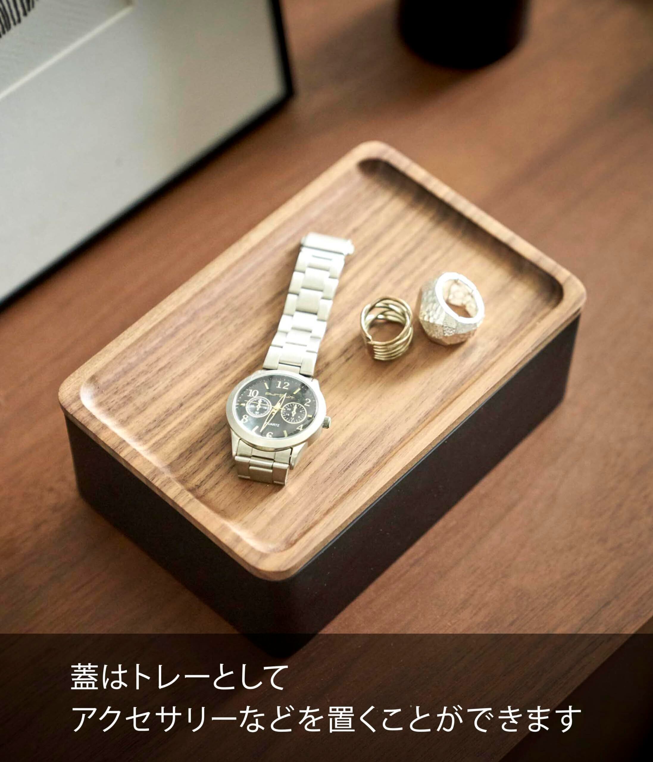蓋はトレーになっているので普段使いの時計やアクセサリーなどを収納していただけます。