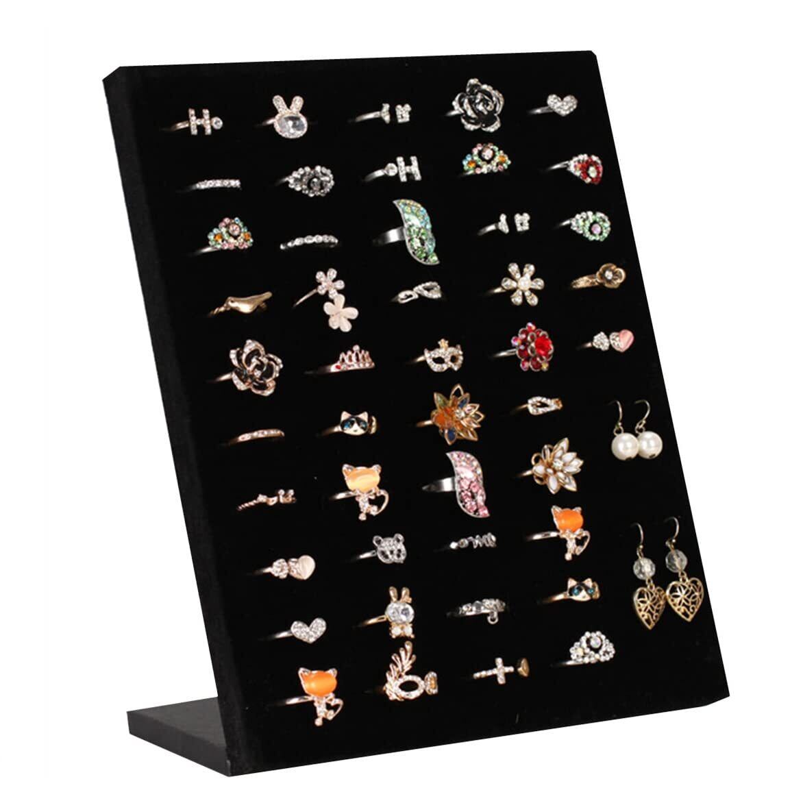 siawadeky 指輪スタンド L型 ピアス アクセサリースタンド ディスプレイ ベロア調 ジュエリー トレイ ジュエリーケース 指輪ケース ピアス整理 小物入れ ディスプレイ リング 50個収納可能