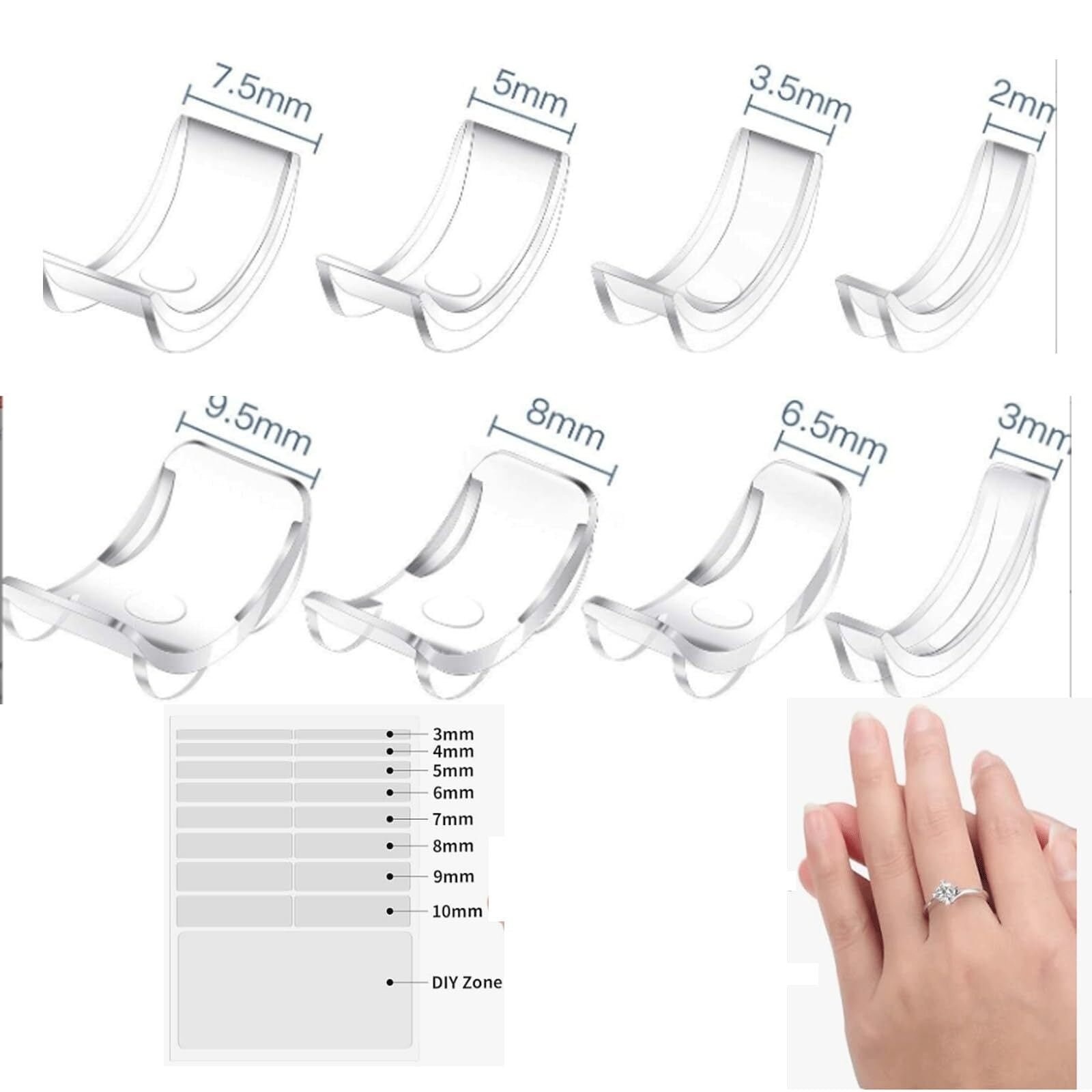 【新春セール】【Bookwarm】指輪 サイズ調節 リングアジャスター【二種類:粘着テープ仕様17枚 嵌入式仕様8枚】滑り止め 貼るだけ 指輪脱落防止用 リングサイズ調整用シリコンパッド 透明で違和感なく DIY サイズ調整 二種類仕様で合計25枚,ルーズリング用 (8) | 無意味ステッカー
