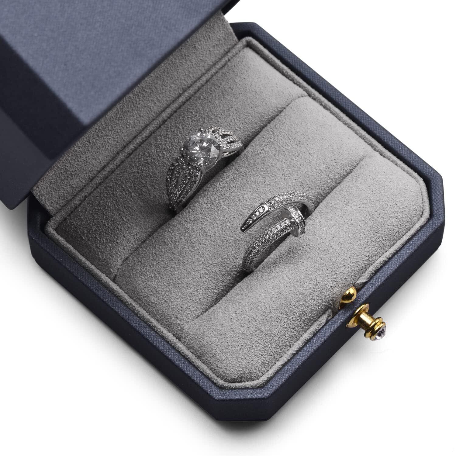 Oirlv 指輪ケース 2個 婚約指輪 ケース PUレザー 持ち運び 高級 おしゃれ 結婚式 記念日 ジュエリー保管などに適当 適格請求書に対応 H07602 (ネイビー)