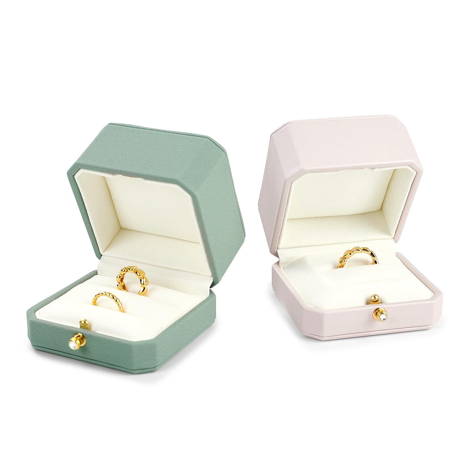 Oirlv 指輪ケース 2個 婚約指輪 ケース PUレザー 持ち運び 高級 おしゃれ 結婚式 記念日 ジュエリー保管などに適当 適格請求書に対応 H17502 (グリーン)