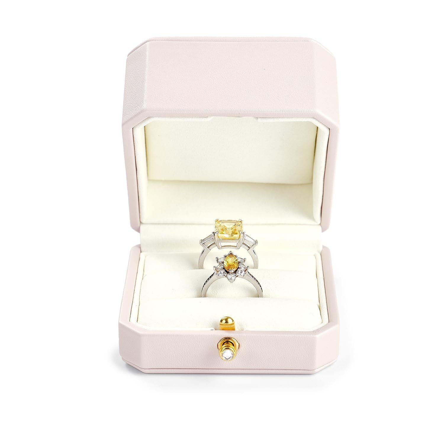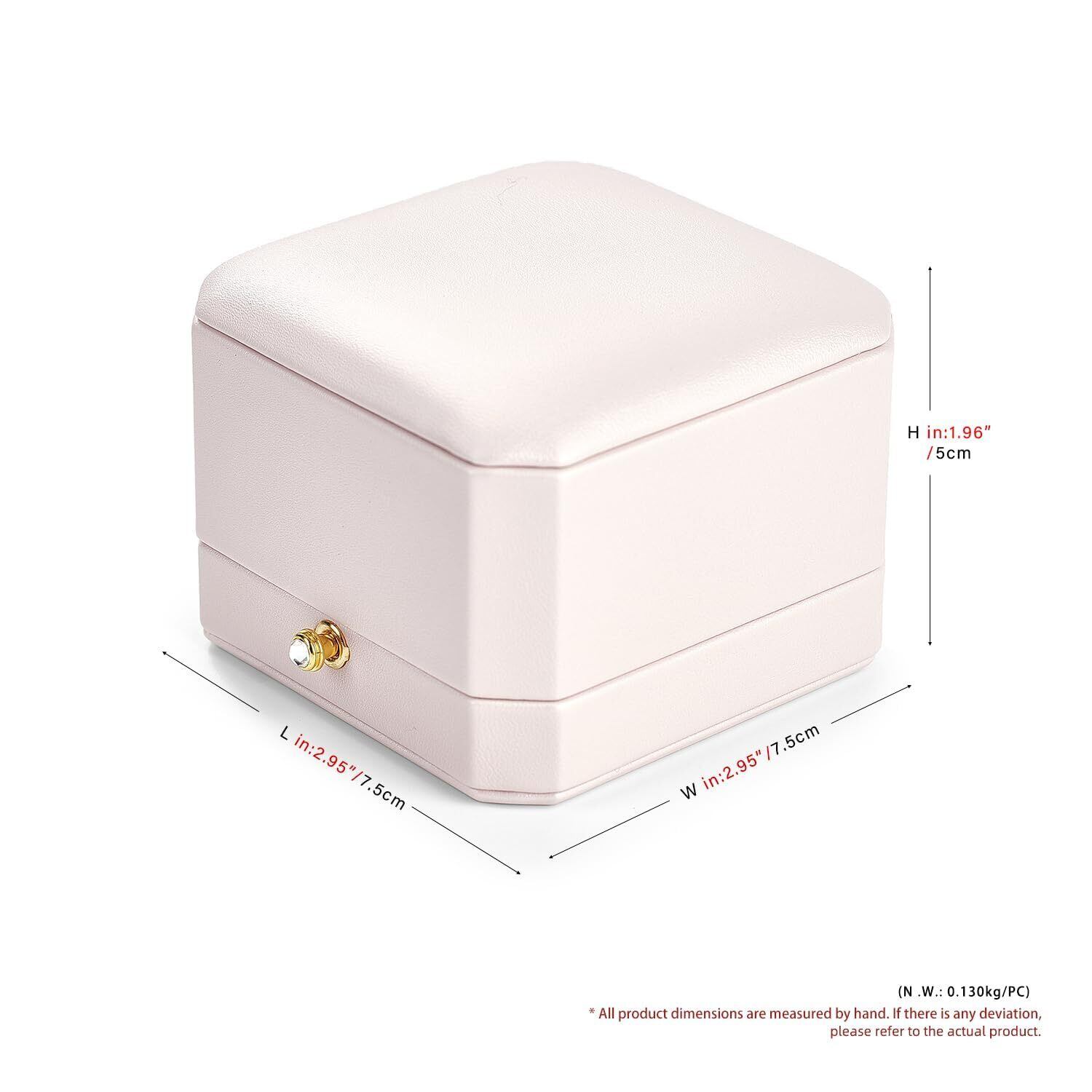 【こだわりのデザイン】この指輪ケースは伝統的な四角や丸型とは異なり、クラシックでユニークな八角形のデザインが、一目で目立ち、ブランド認知度を高めるだけでなく、リングボックスをより重層的で高級感のあるものにしています。ケースの開閉は簡単で、前方の金具を押すだけでパカッと開きます。ケースの上部(蓋部分)を深くすることで、大きなジュエリーも収納できます。