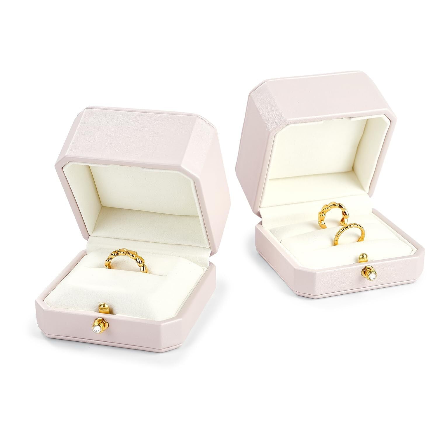 Oirlv 指輪ケース 2個 婚約指輪 ケース PUレザー 持ち運び 高級 おしゃれ 結婚式 記念日 ジュエリー保管などに適当 適格請求書に対応 H17504 (ピンク)