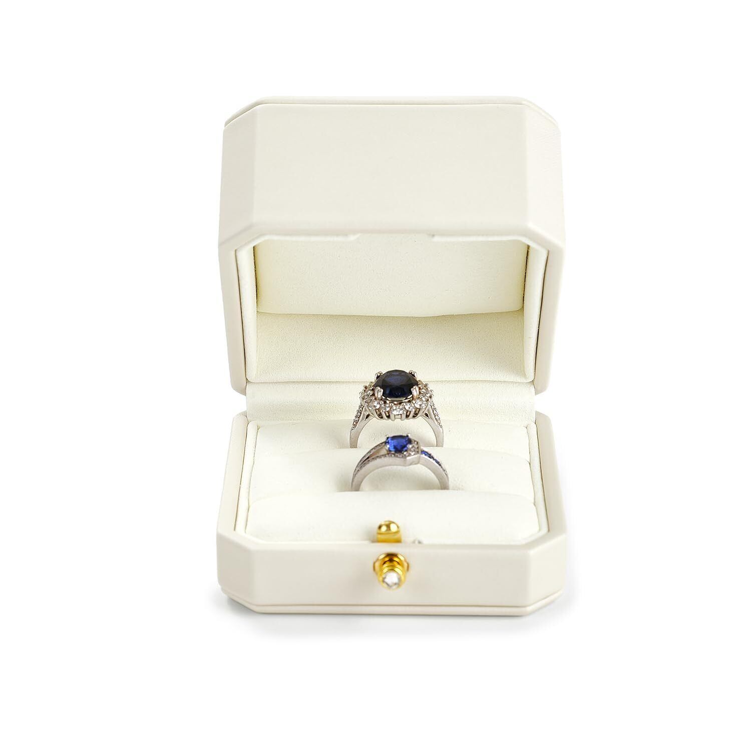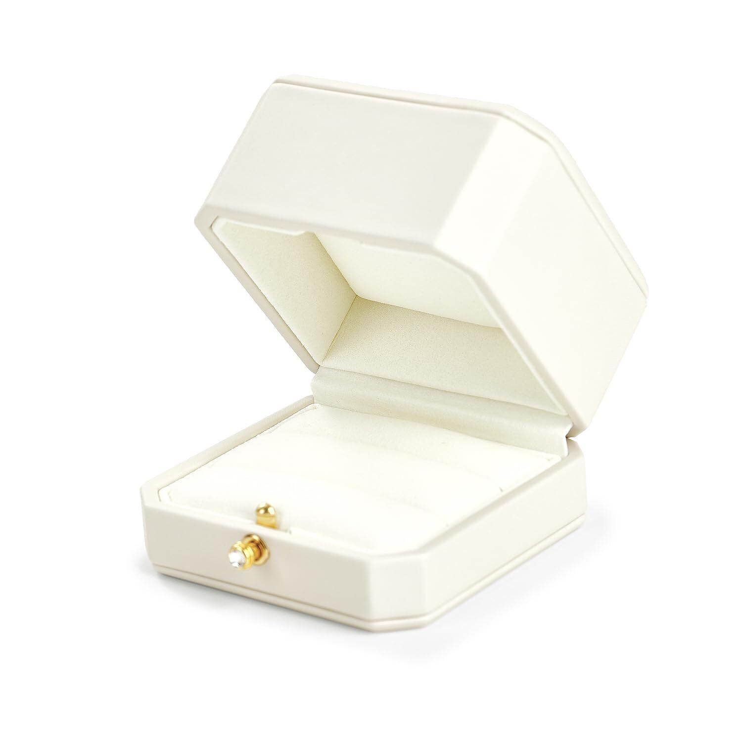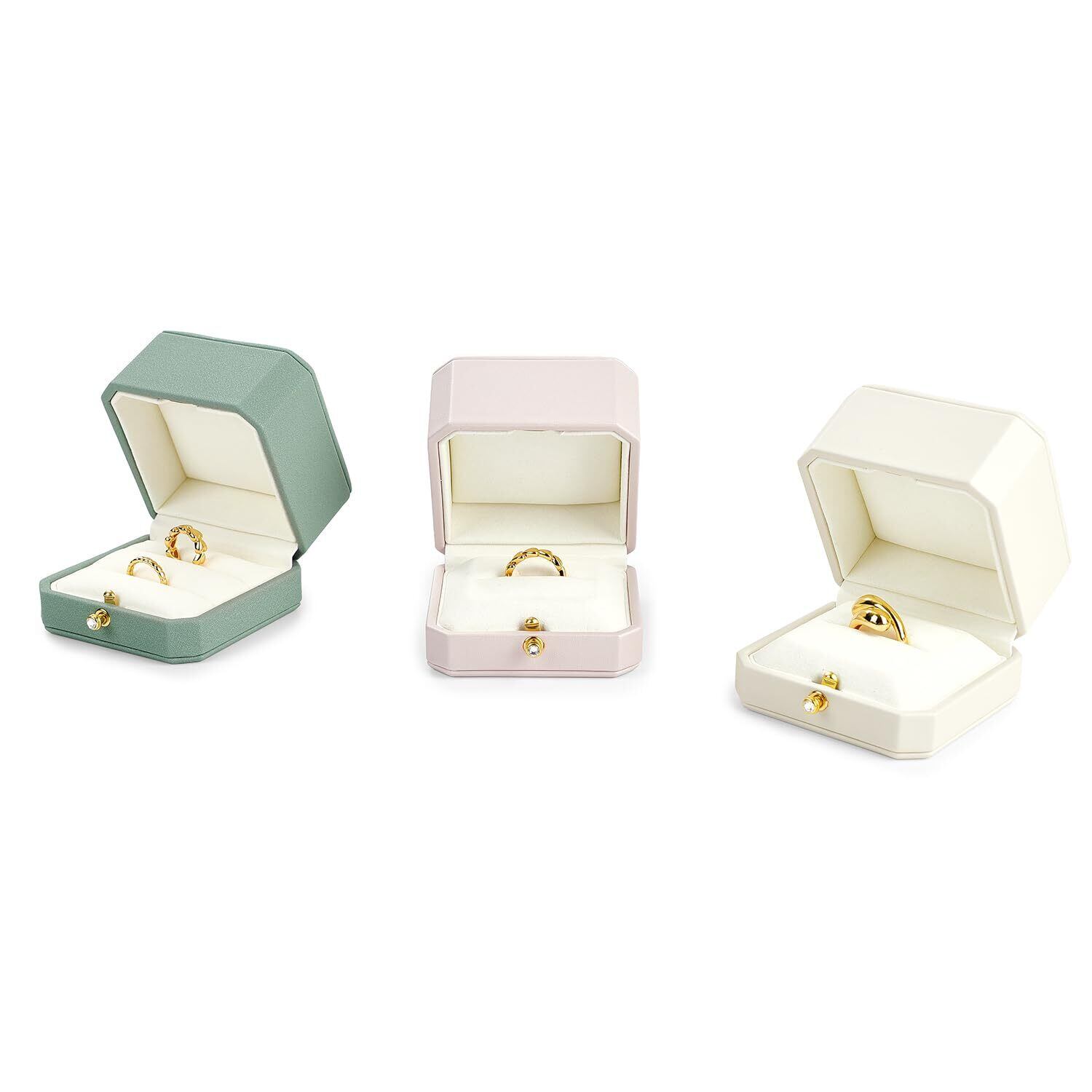【こだわりのデザイン】この指輪ケースは伝統的な四角や丸型とは異なり、クラシックでユニークな八角形のデザインが、一目で目立ち、ブランド認知度を高めるだけでなく、リングボックスをより重層的で高級感のあるものにしています。ケースの開閉は簡単で、前方の金具を押すだけでパカッと開きます。ケースの上部(蓋部分)を深くすることで、大きなジュエリーも収納できます。
