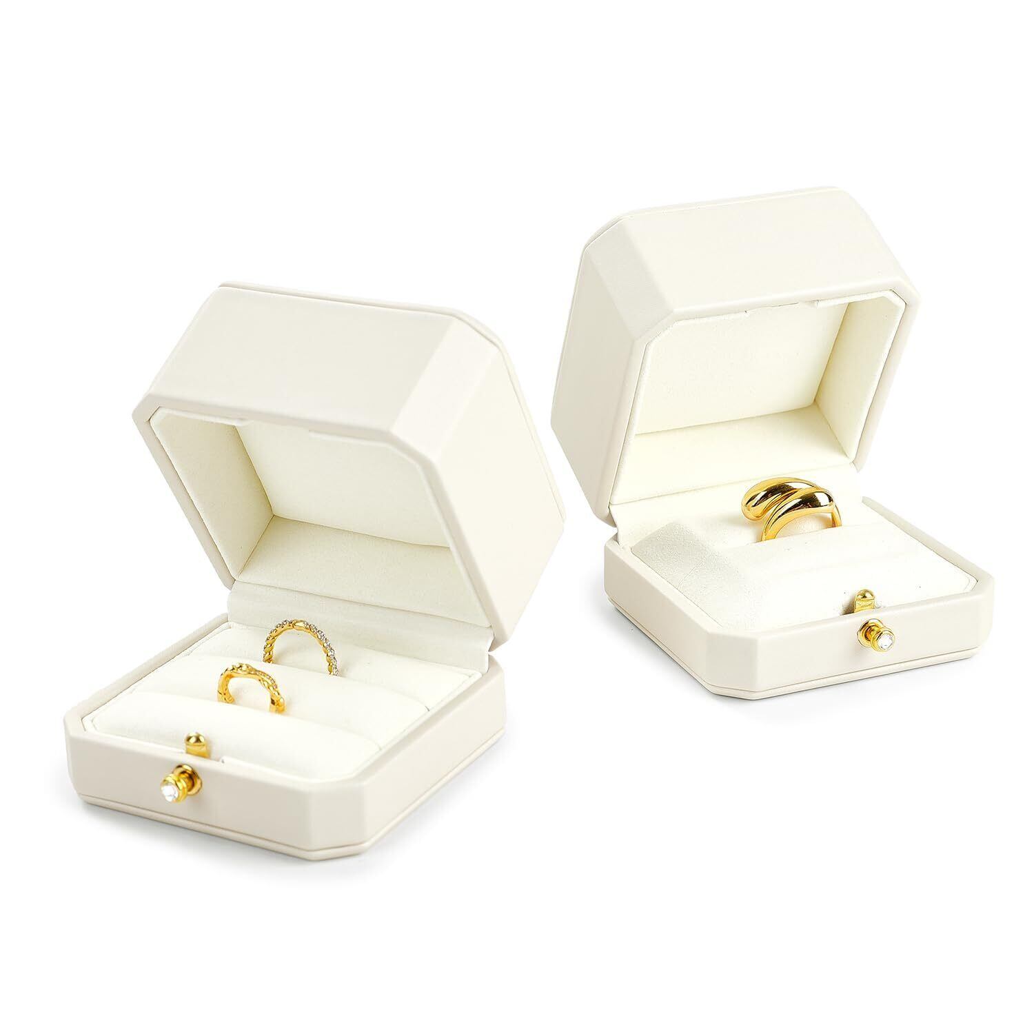 Oirlv 指輪ケース 2個 婚約指輪 ケース PUレザー 持ち運び 高級 おしゃれ 結婚式 記念日 ジュエリー保管などに適当 適格請求書に対応 H17506 (ベージュ)