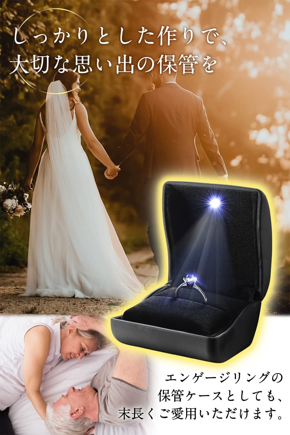 【LED付きの指輪ケース】プロポーズやプレゼント時に最適なLED指輪ケース!ジュエリーボックを開けると、LEDの光が指輪にさし込み、暗い場所でも指輪を綺麗にライトアップしてくれる優れもの!大切なリングをより美しく輝かせます。