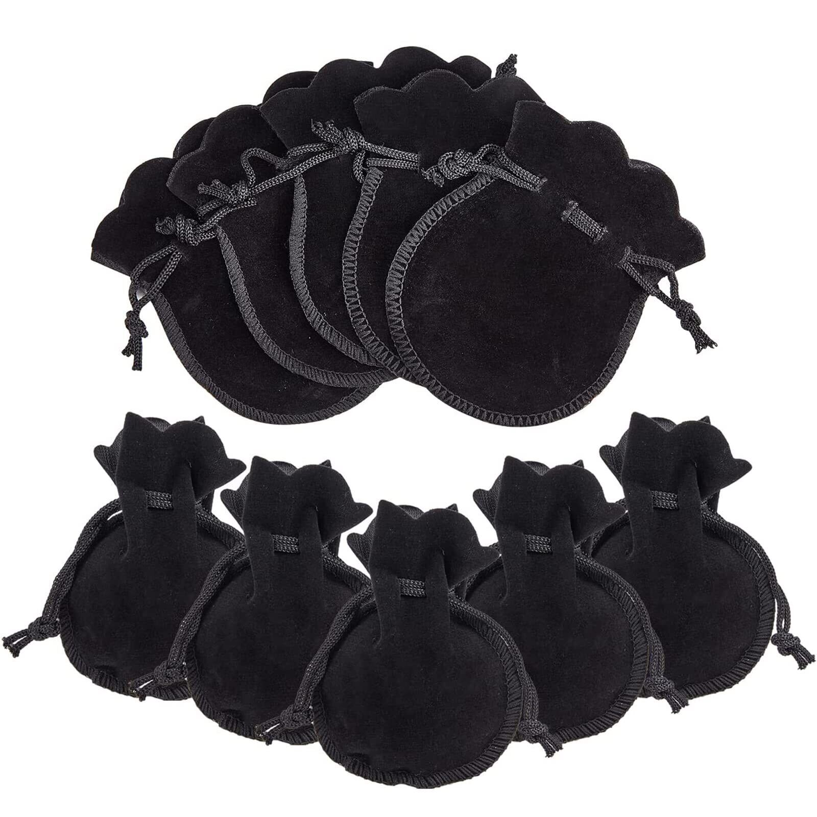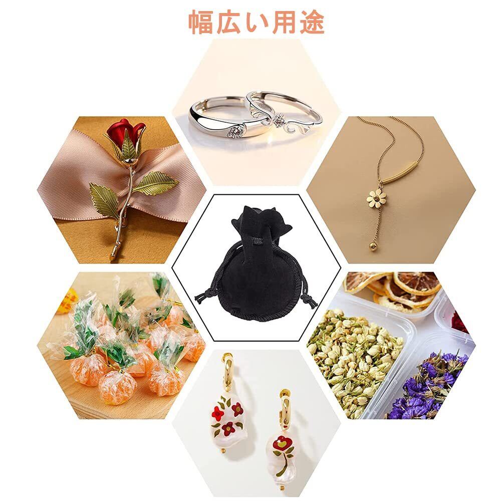 巾着袋 ベロア調 10枚入り ジュエリーポーチ アクセサリー保存 多機能 ギフトバッグ 小物入れ ラッピング プレゼント用収納袋 (ブラック)