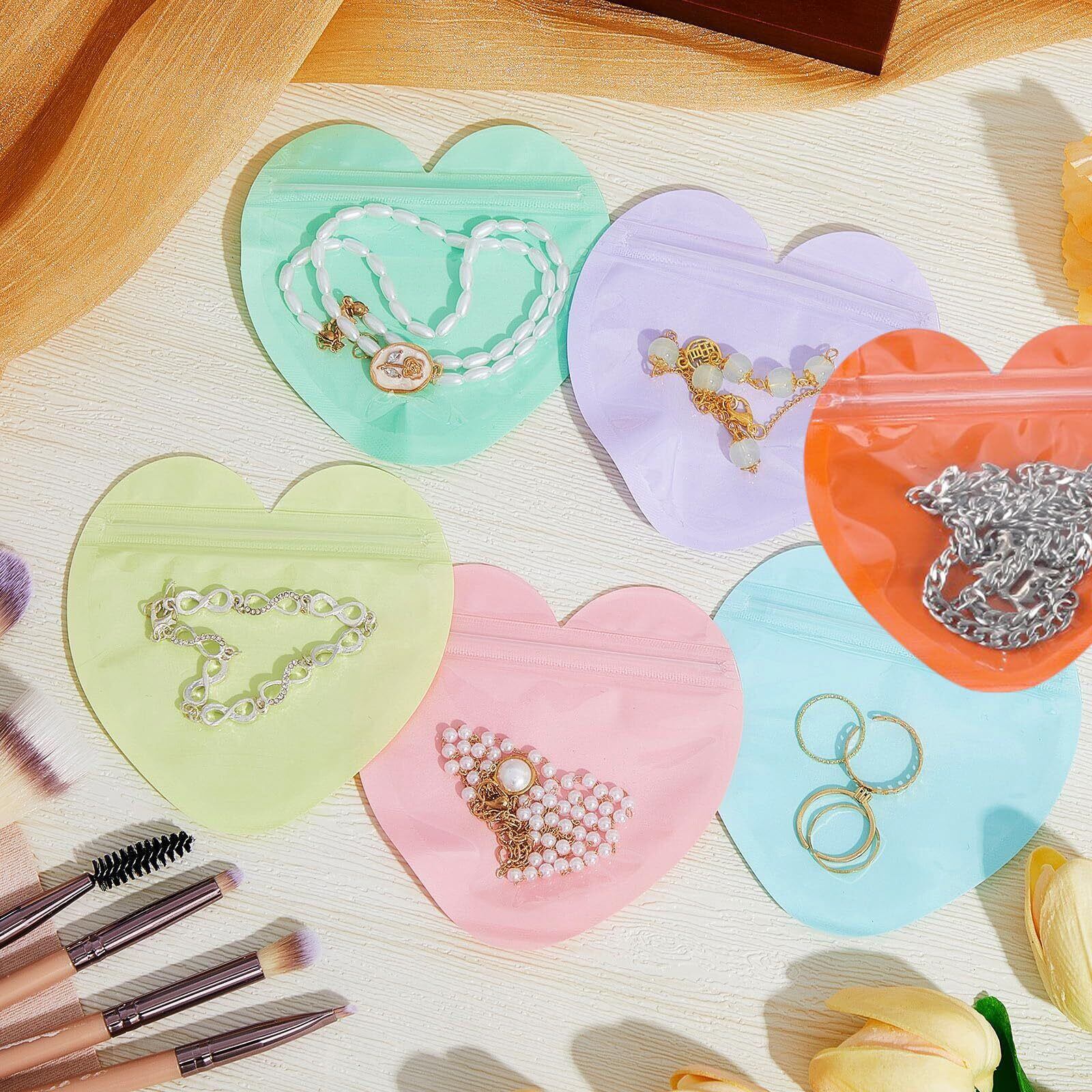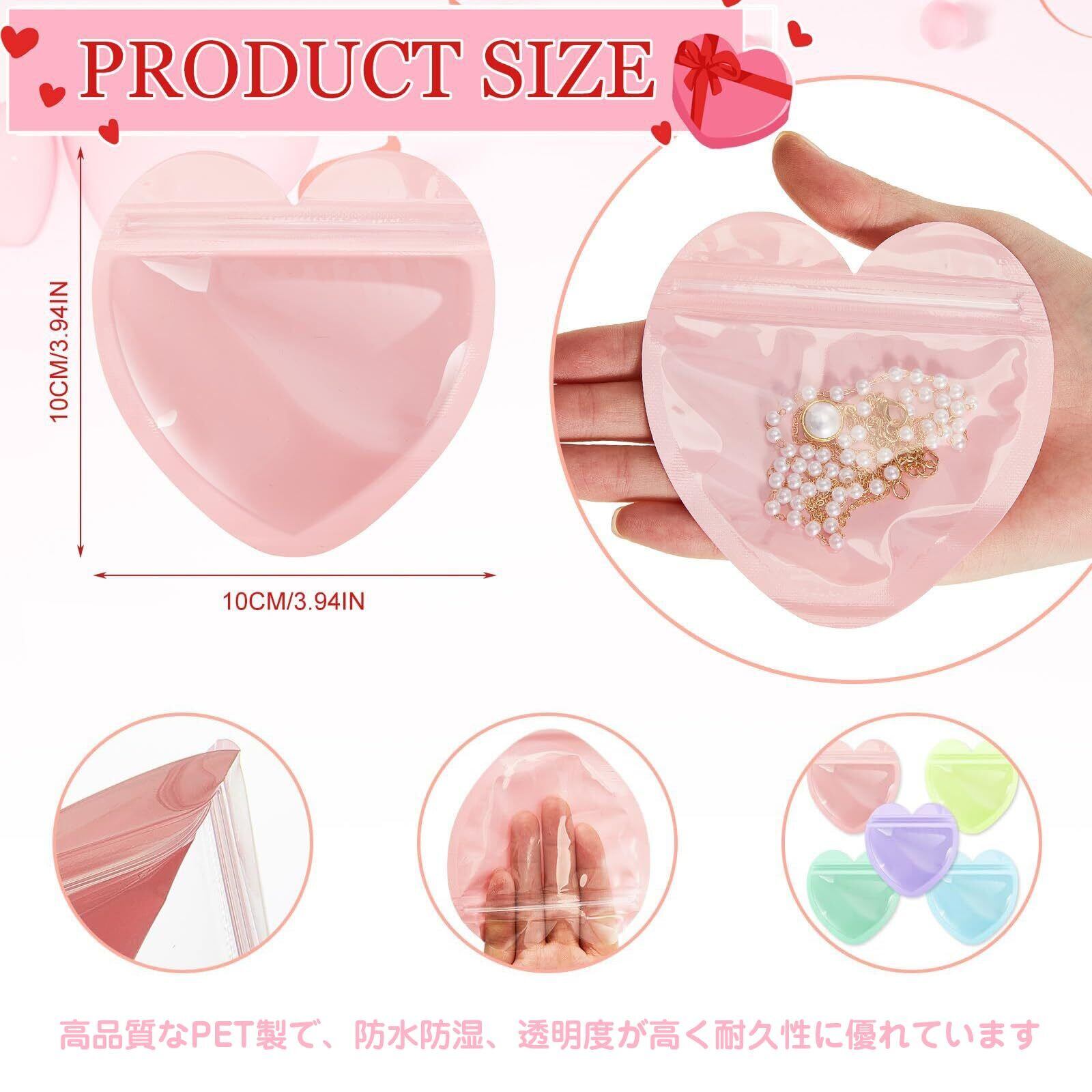 チャック付きポリ袋 30個 6色 マカロン ハート型 かわいい 小物収納 クセサリーバッグ ビーズ収納 パーツ収納 再密封可能 防水 半透明 出張 旅行 携帯