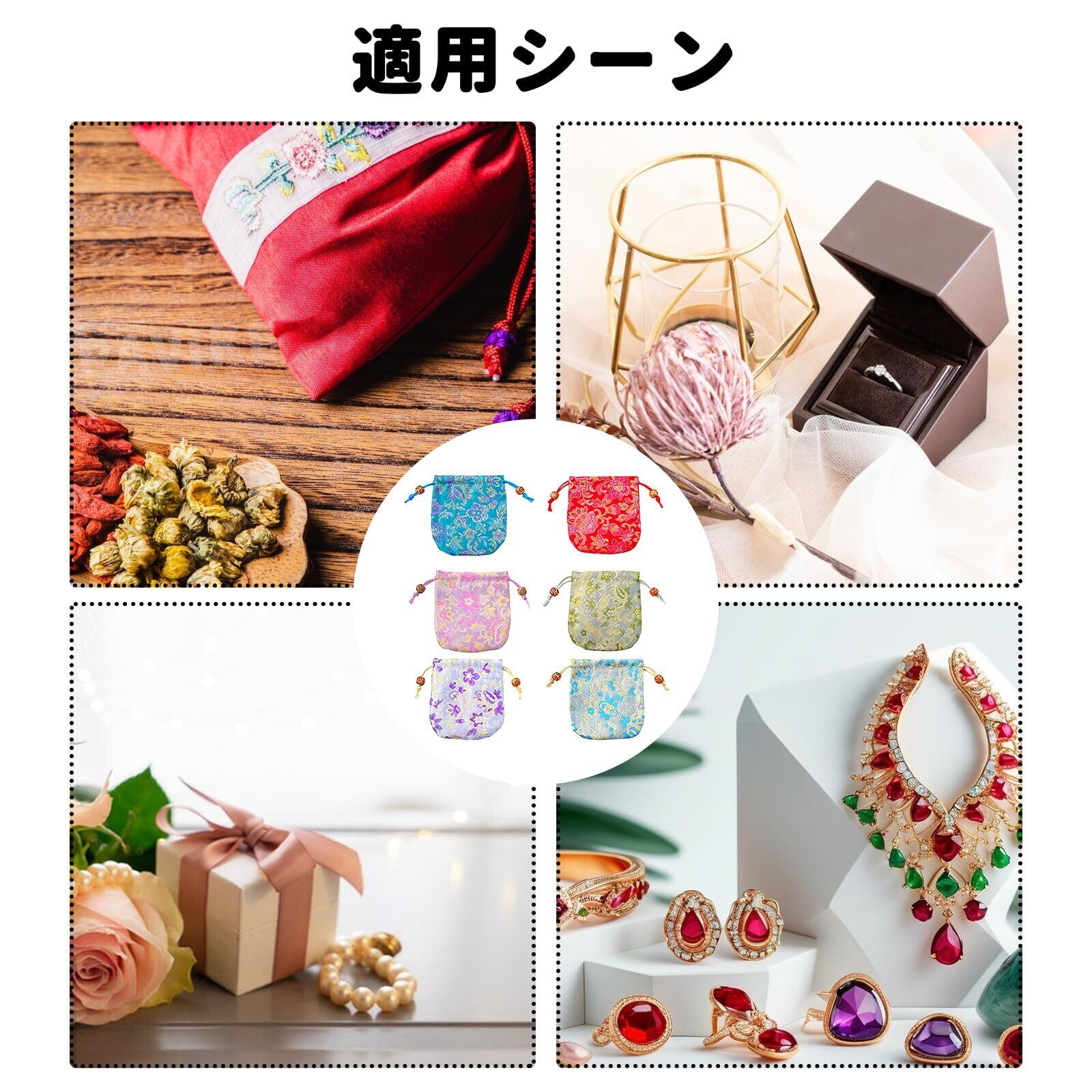 "これらのポータブル巾着ポーチは、保管、家庭の整理、装身具、おもちゃ、結婚式の容器に適用します。漢方薬、ヨモギ、虫除けスパイスなどスパイス入れとしても使えます。 ご注意: