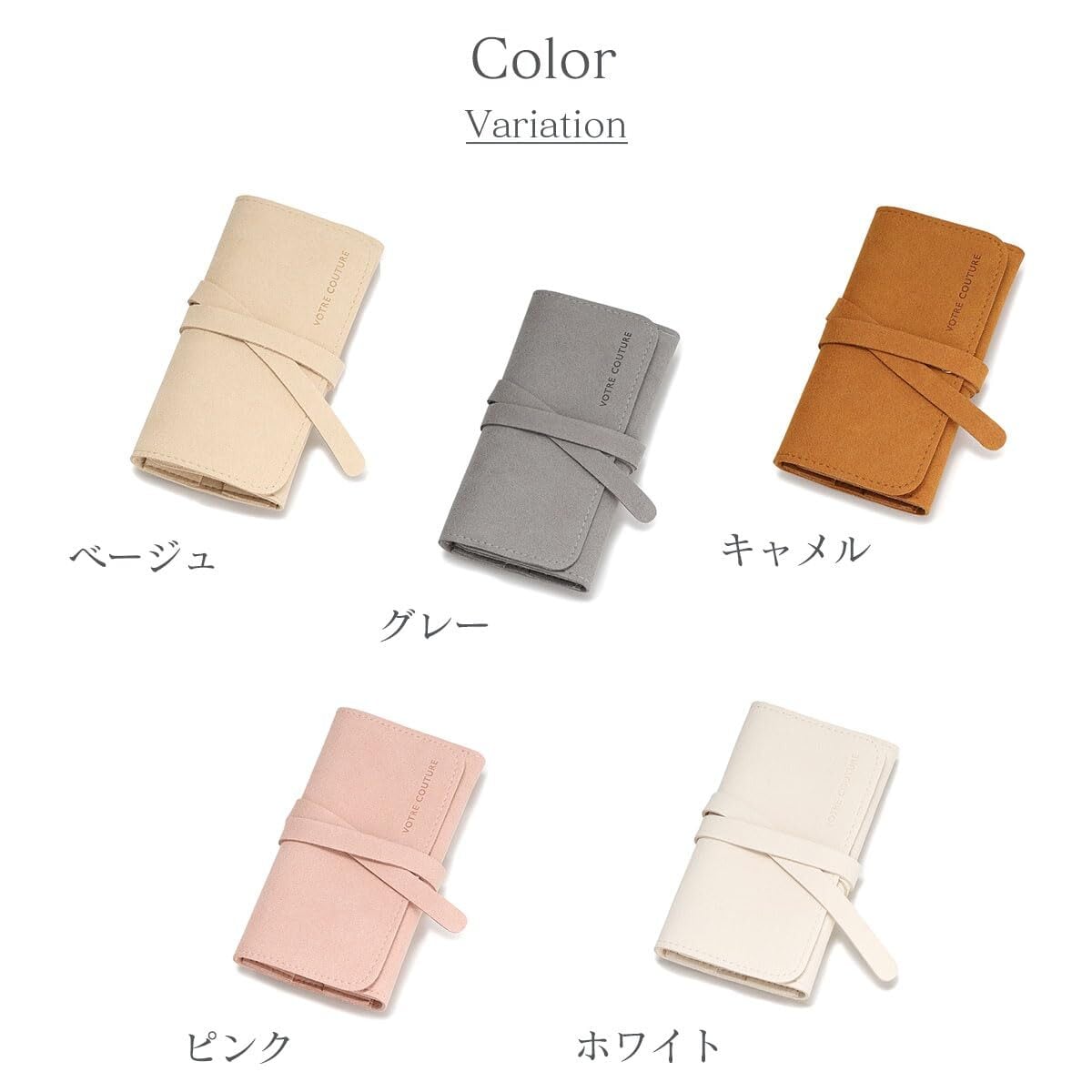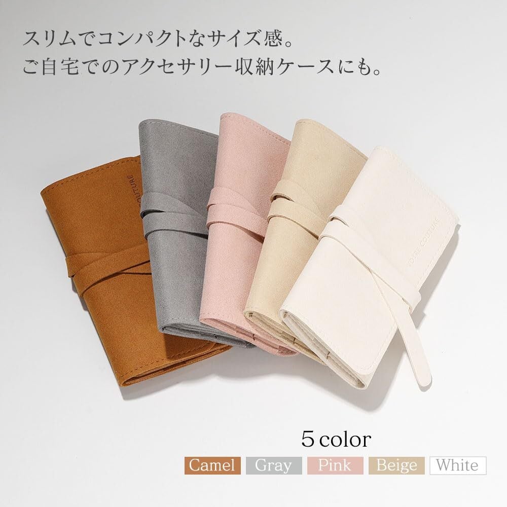 持ち運びに便利なアクセサリーケース。お出かけや旅行に便利なコンパクトサイズです。お手持ちのネックレスやピアス、イヤリング、リングの収納にご利用下さい。カラーは選べる5色展開。ベージュ、グレー、キャメル、ピンク、ホワイトの中からお好みのカラーをお選び下さいませ。