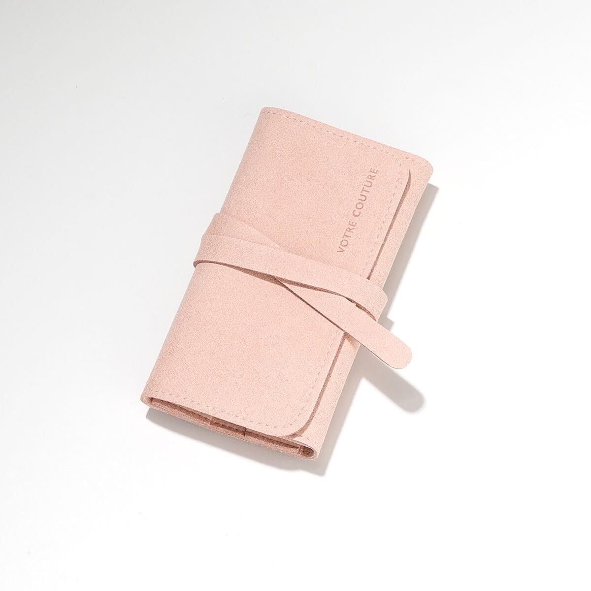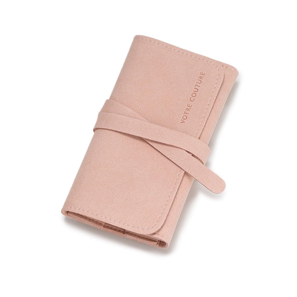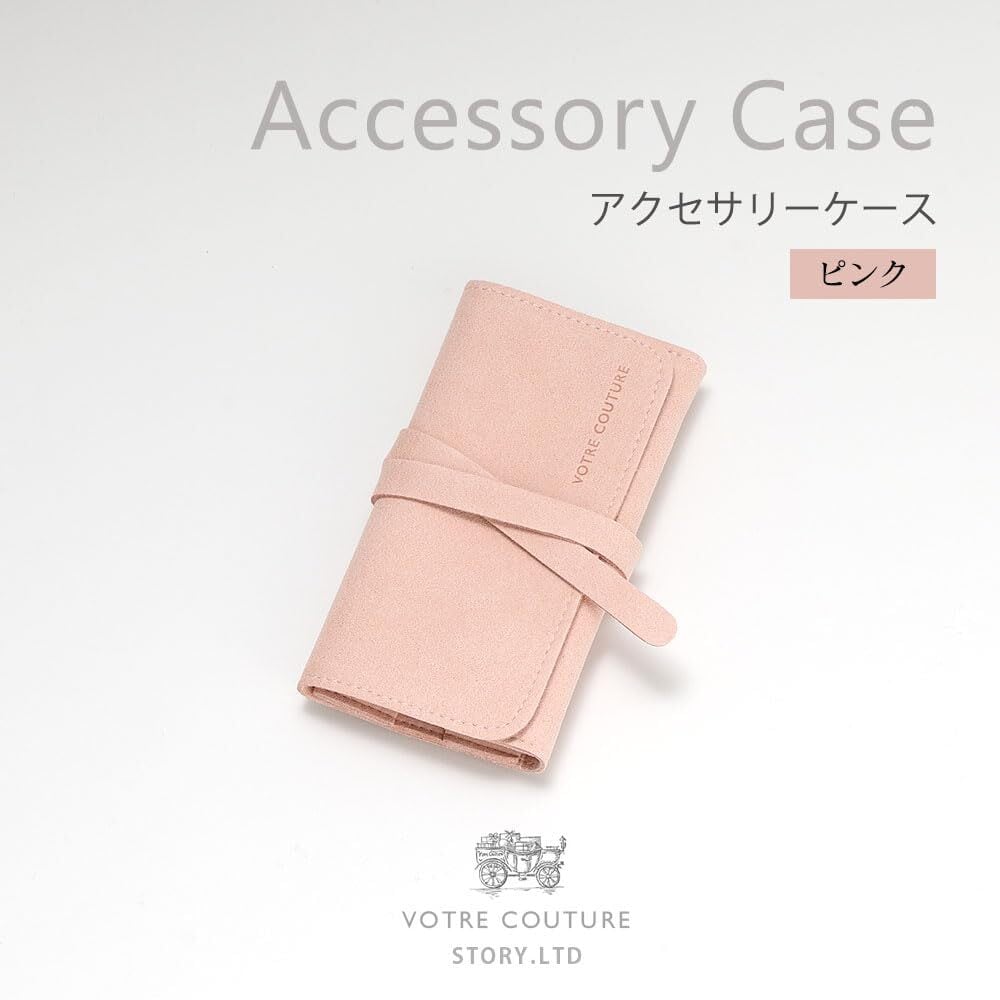 [VOTRE COUTURE] アクセサリーケース ネックレス ピアス イヤリング 指輪 リング シンプル レザー 革 ソフトケース 持ち運び ジュエリーポーチ ピンク